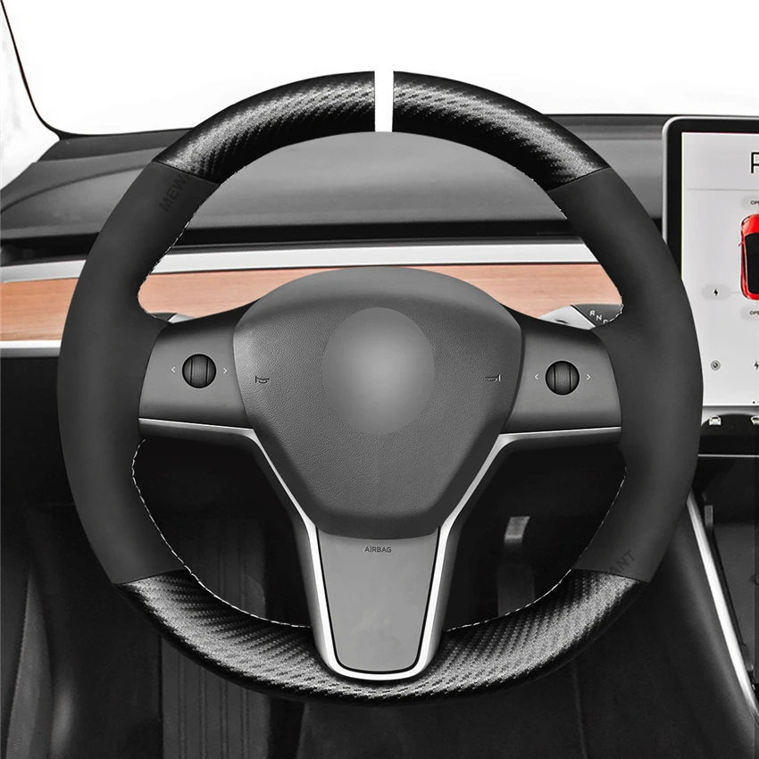 Оплетка MEWANT из черной замши Чехлы рулевого колеса автомобиля для Tesla, модель 3 2017 2018 2019-2020, модель Y 2020-2021