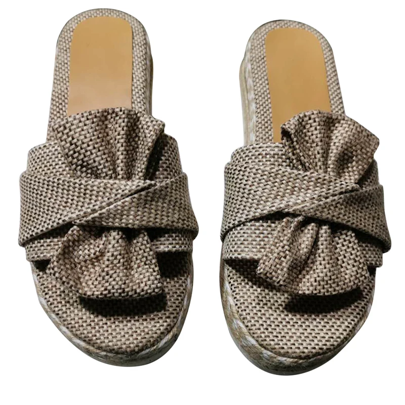 Сандалии с бантом, соломенные шлепанцы большого размера