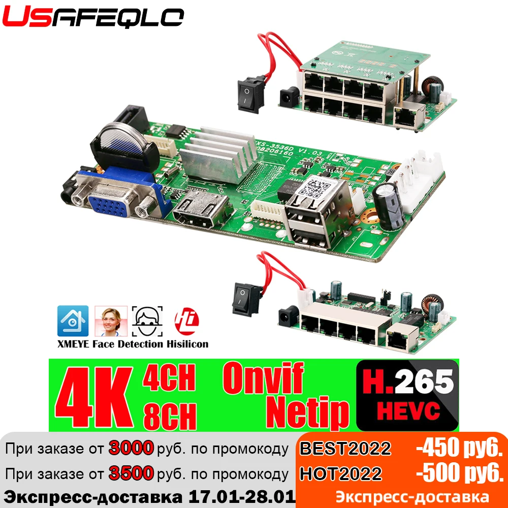 Система видеонаблюдения H.265 4K, 8-канальный Сетевой IP-видеорегистратор с функцией распознавания лиц, 4 канала, POE, NVR XMEYE, ONVIF