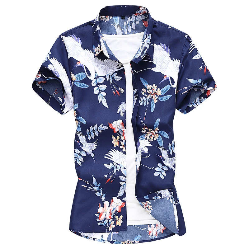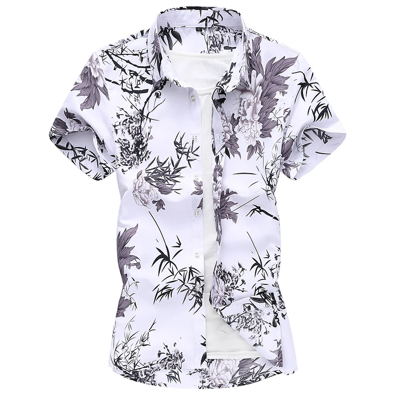 Рубашка мужская с принтом, с коротким рукавом, размеры до 7XL