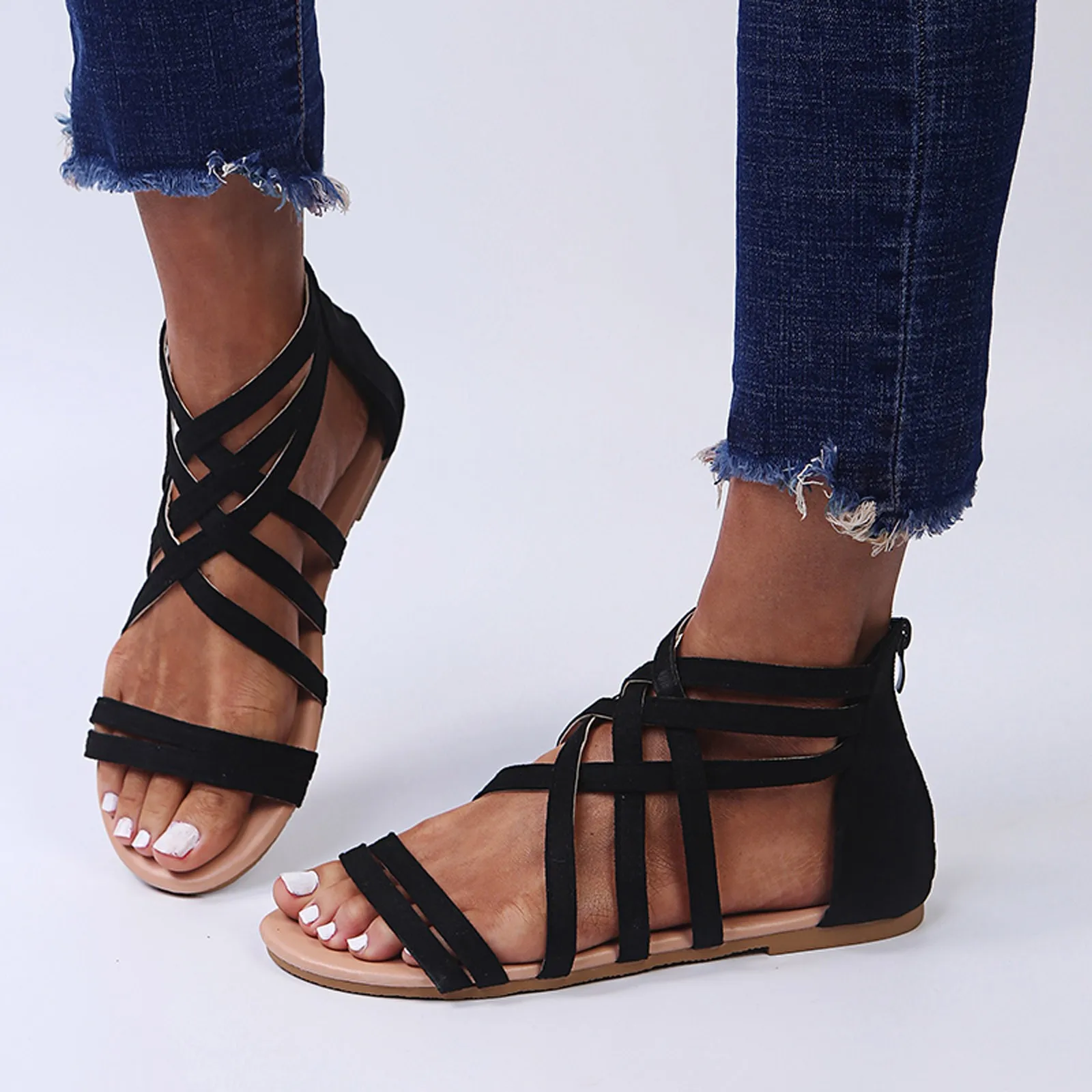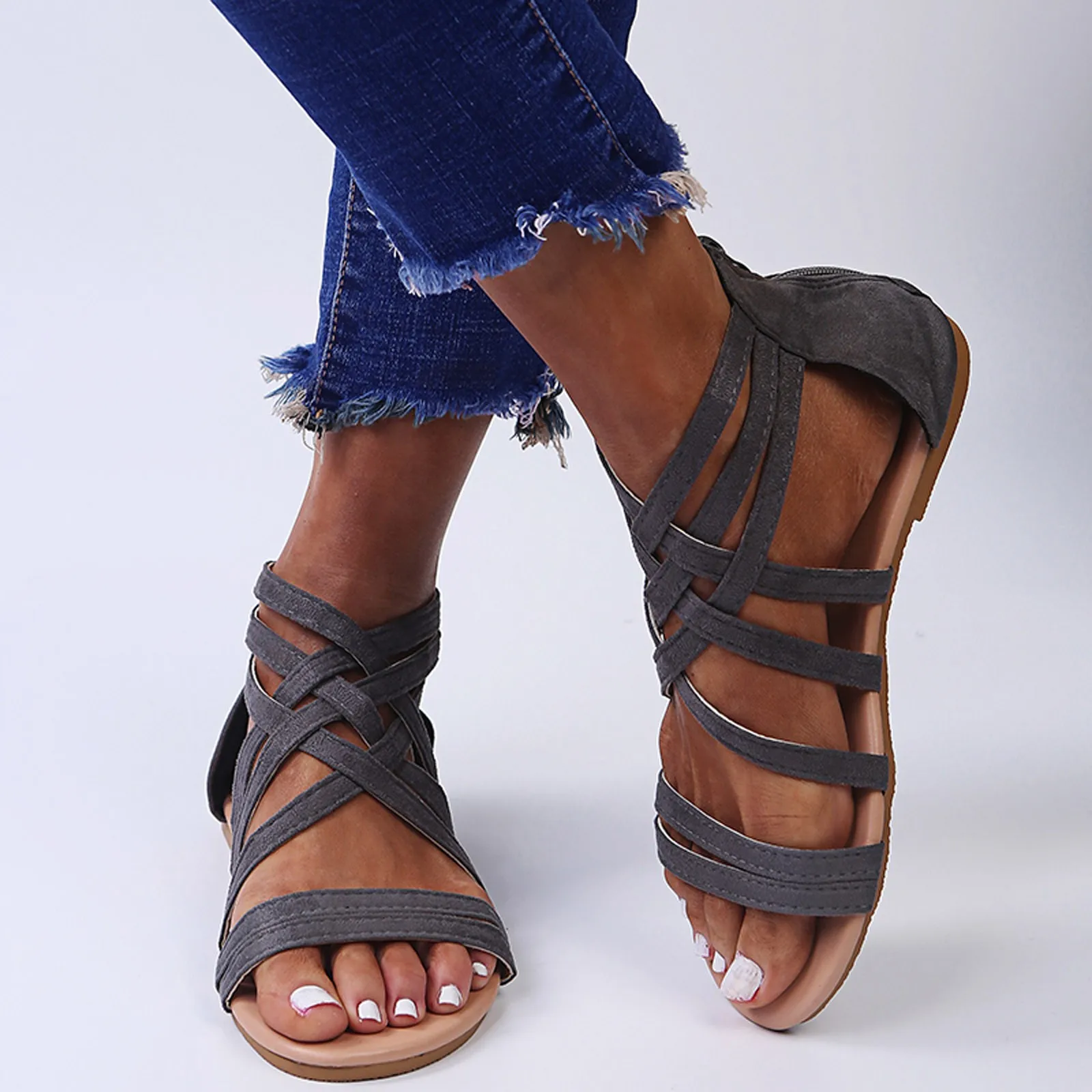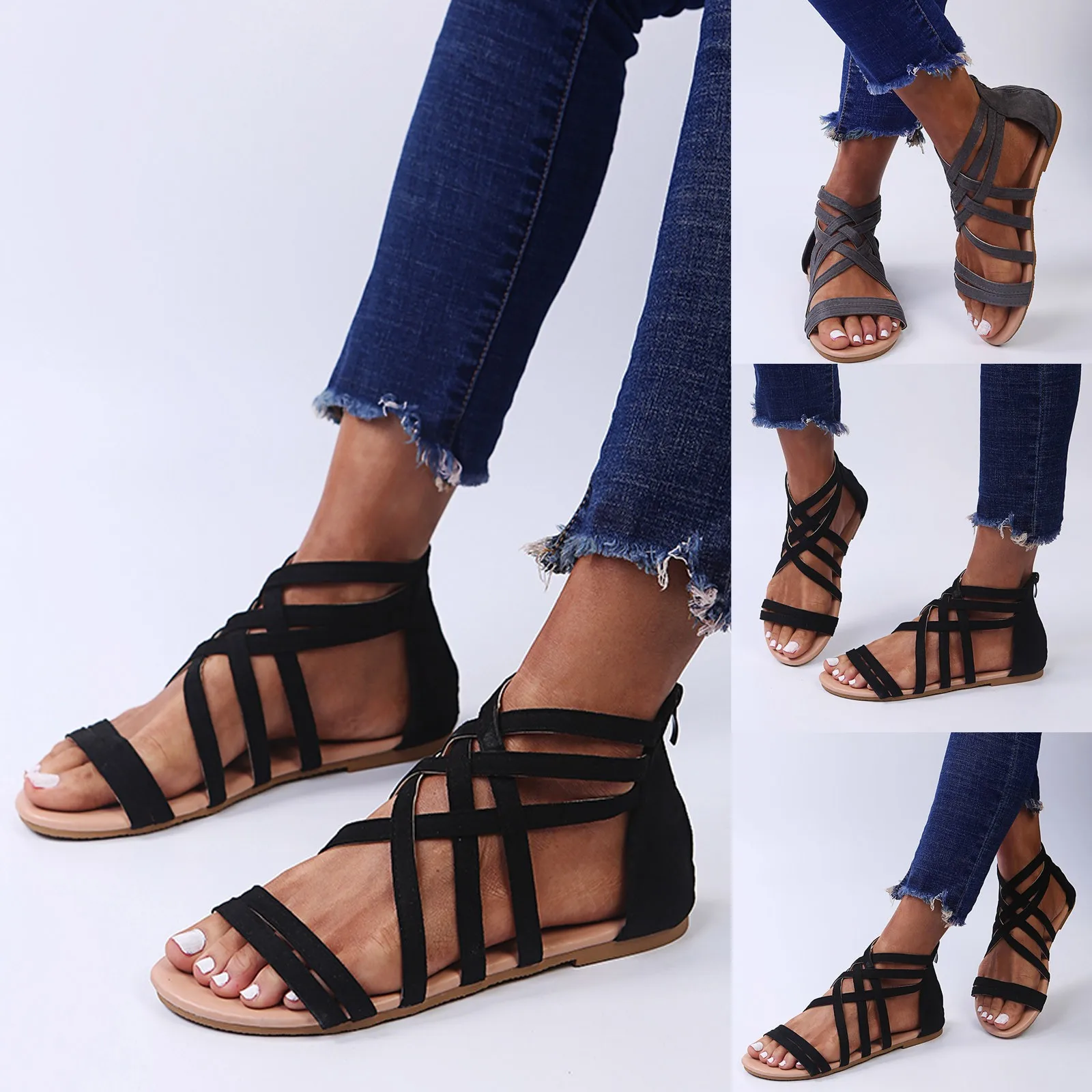 Модные женские летние пляжные дышащие сандалии на молнии с открытым носком