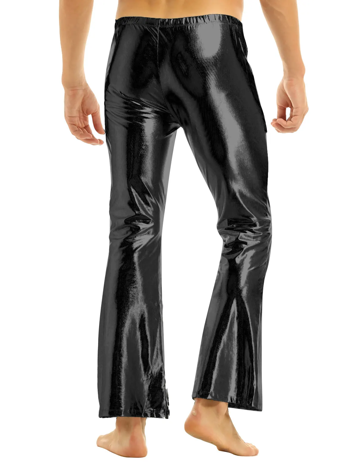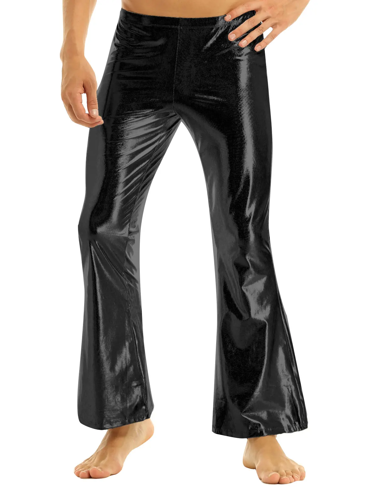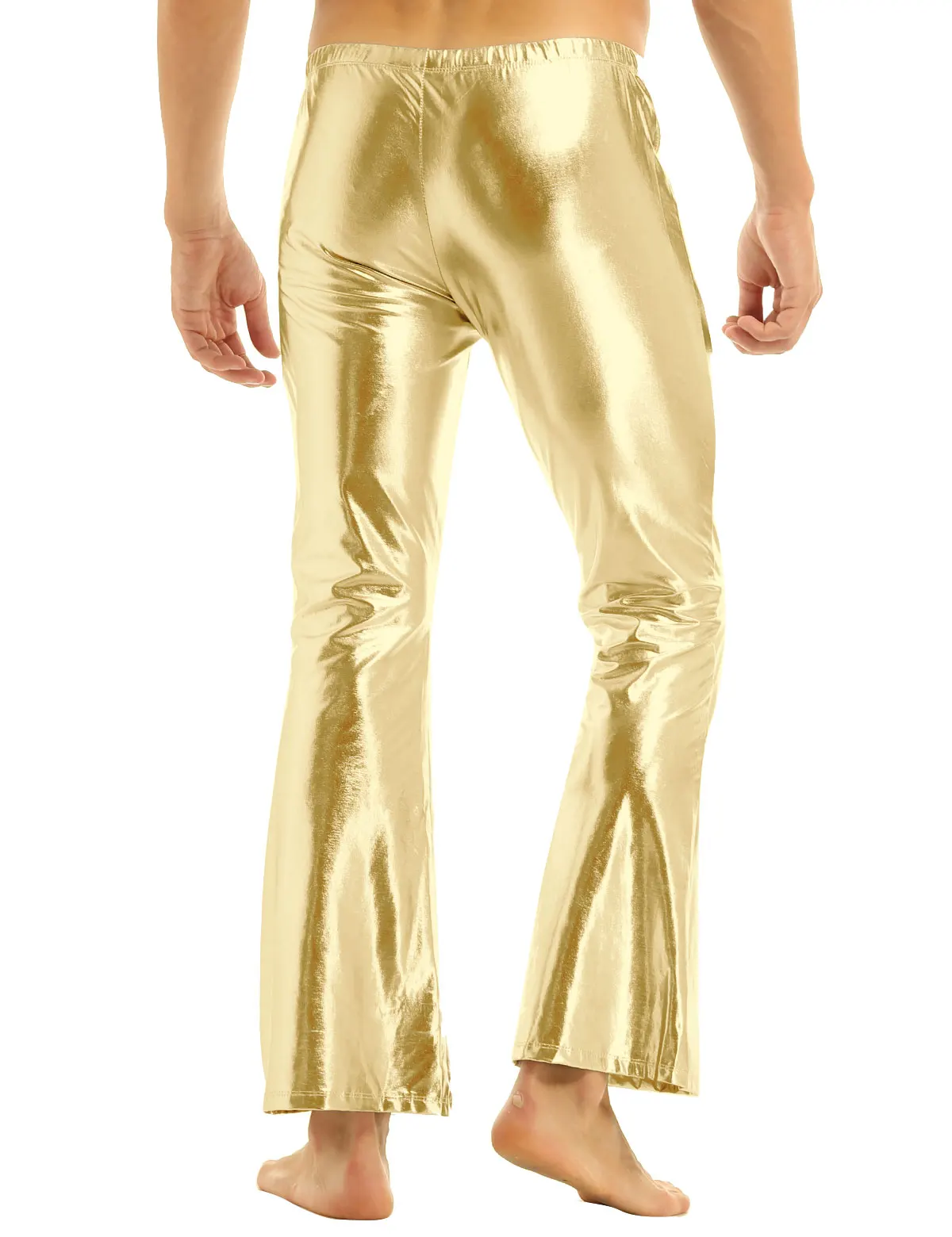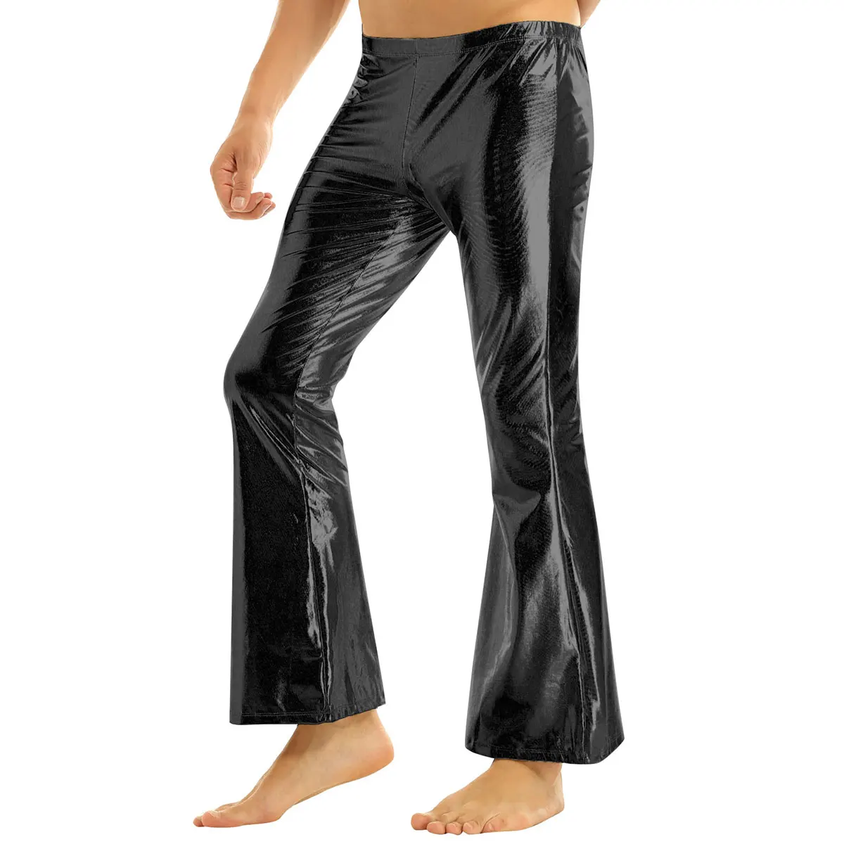 Мужские блестящие металлические брюки, винтажные расклешенные длинные брюки в стиле 70-х, прямые зауженные брюки