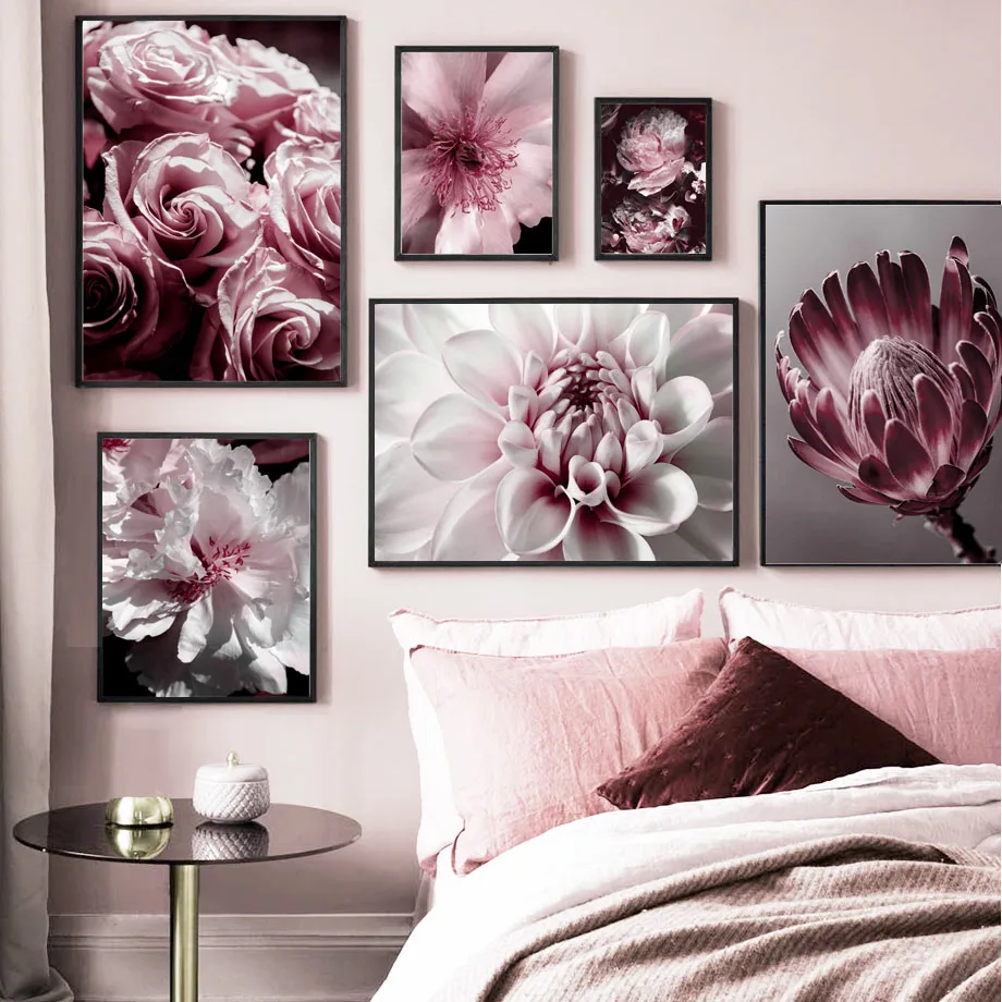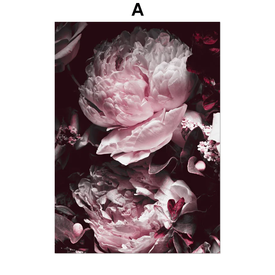 Большая Роза Пион цветок листья холст картины Nordic Плакаты и принты настенные картины для Гостиная Салон декора