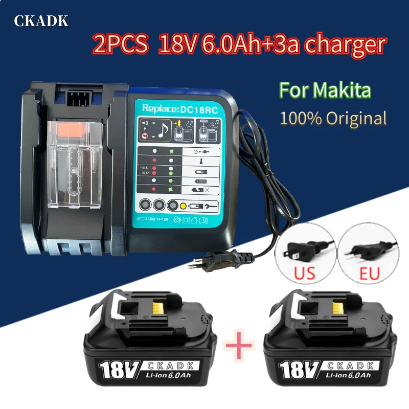 С зарядным устройством BL1860, перезаряжаемая батарея 18 в 6000 мАч...