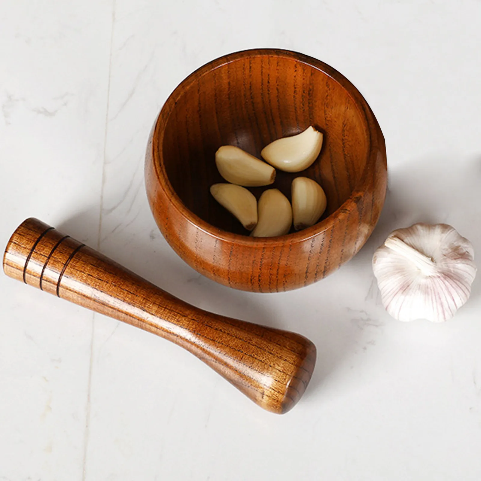 Старомодное деревянная мельница, чеснок Ступка деревянный гладкая ручная полировка пестик Набор Для Измельчения специй трав зерна перца