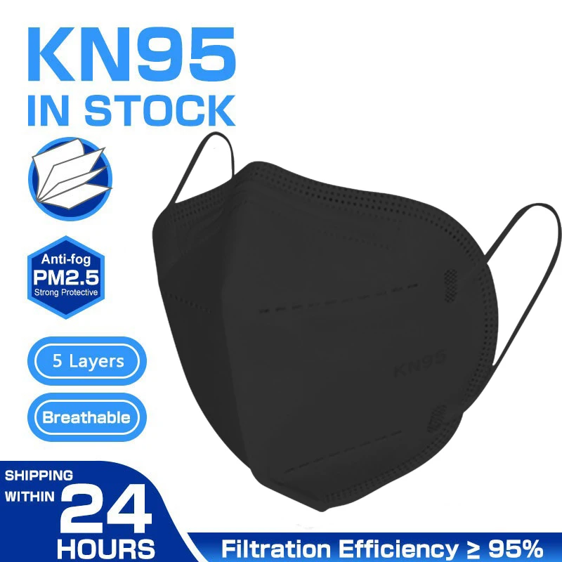 100 шт. маски ffp2 kn95 5 слоев черная маска KN95 FFP2 защитная мас...