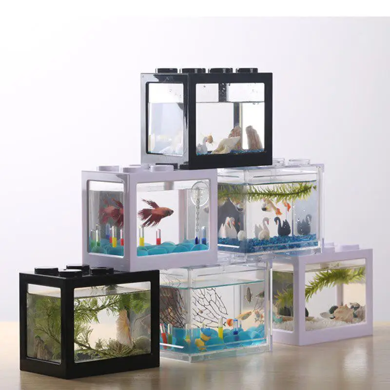 Креативные разноцветные штабелируемые строительные блоки экологический мини аквариум для рыб маленькая рептилия коробка для домашних животных ландшафт морской