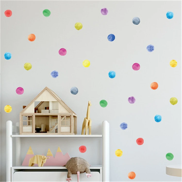 Ins акварельной красочные волна точка наклейки на стену для маленьких девочек Спальня Гостиная Art наклейки сделай сам наклейка с узором в горошек, домашний декор
