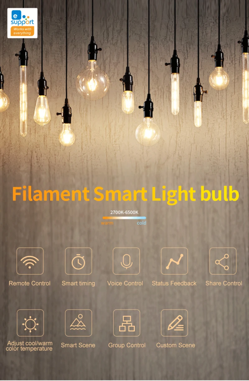 1 * умная светодиодный ная лампа накаливания Ewelink