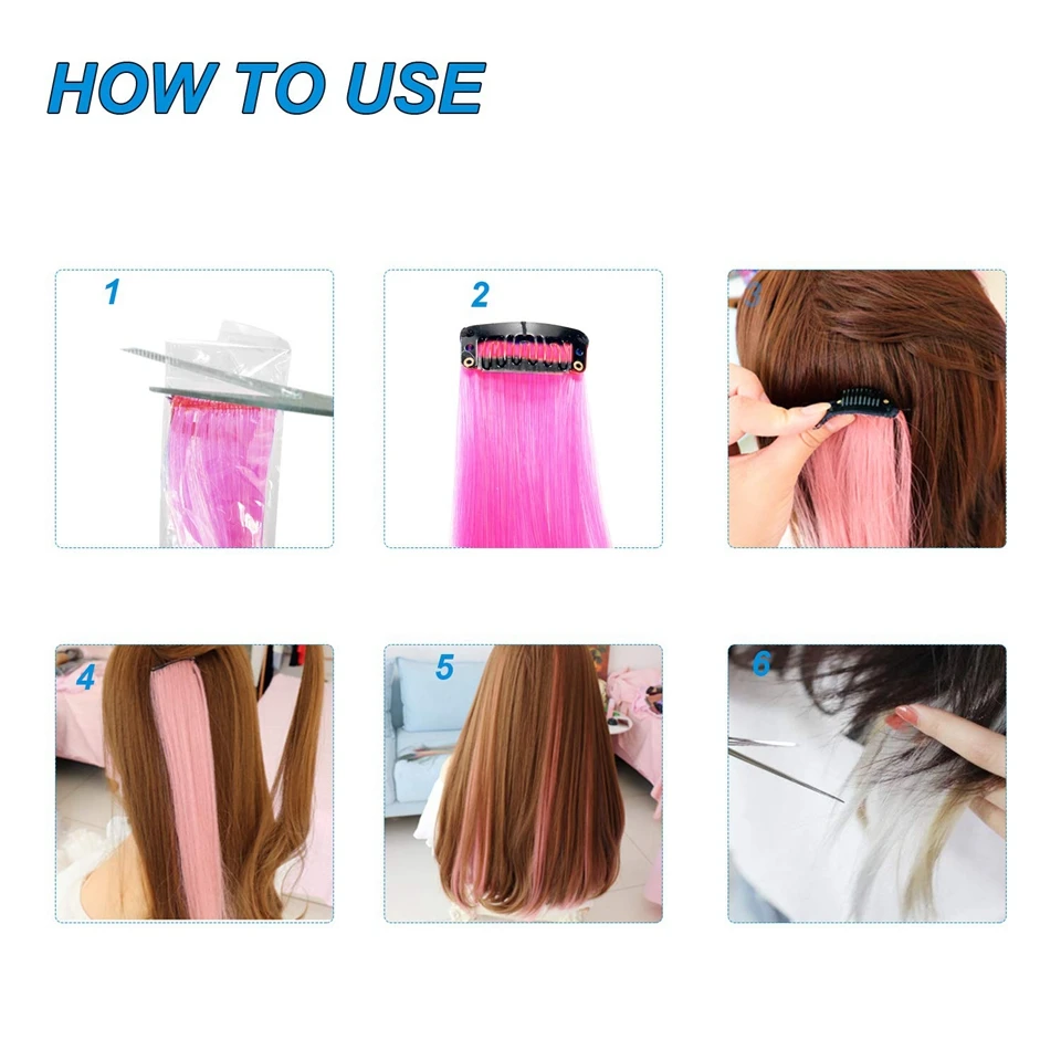 Накладные волосы для наращивания, Длинные прямые, цветные, с зажимом