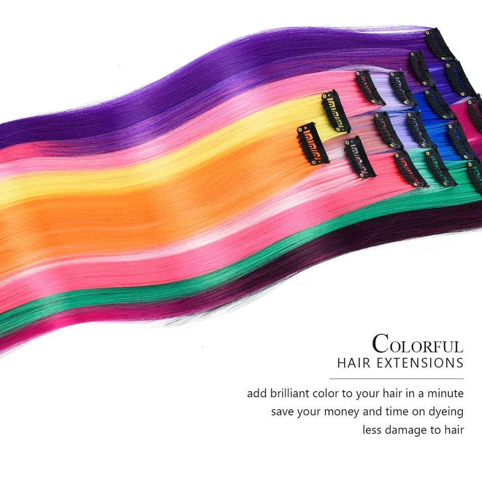 Lupu разноцветные радужные синтетические удлинители волос с зажимом...