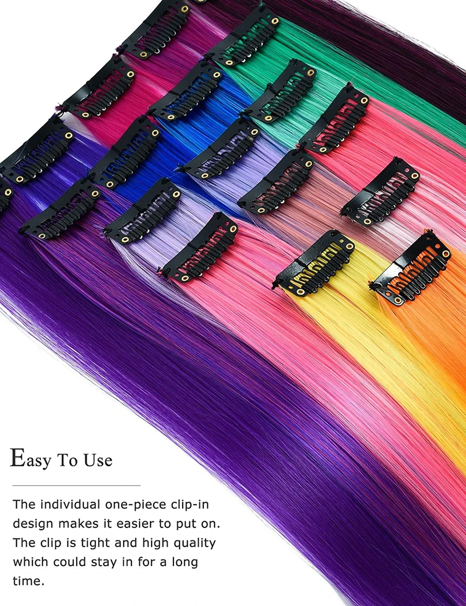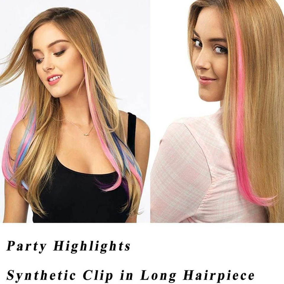 Синтетические пряди волос на заколках Lupu, Длинные прямые Разноцве...