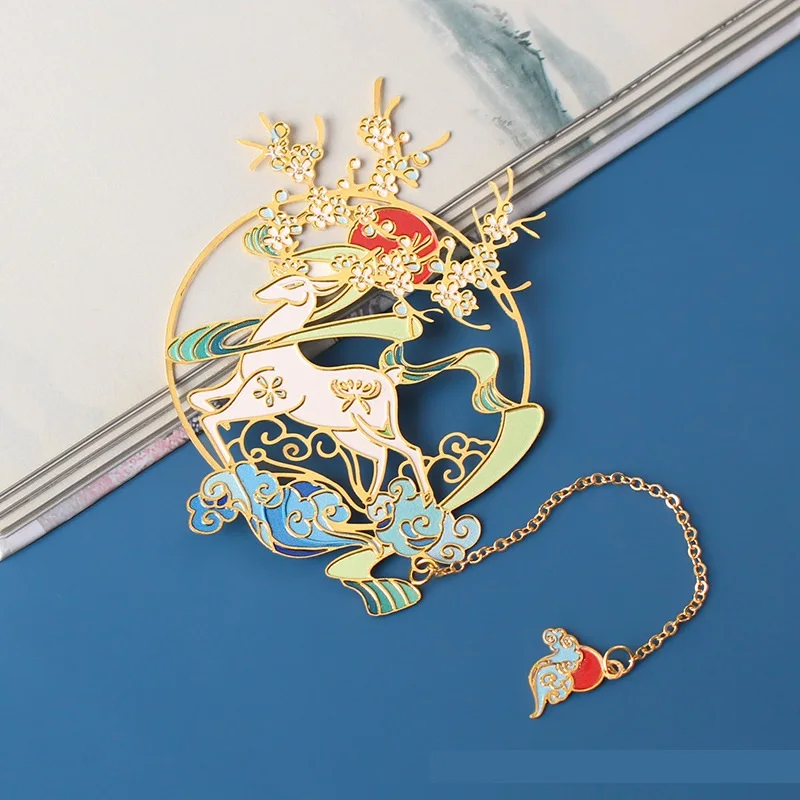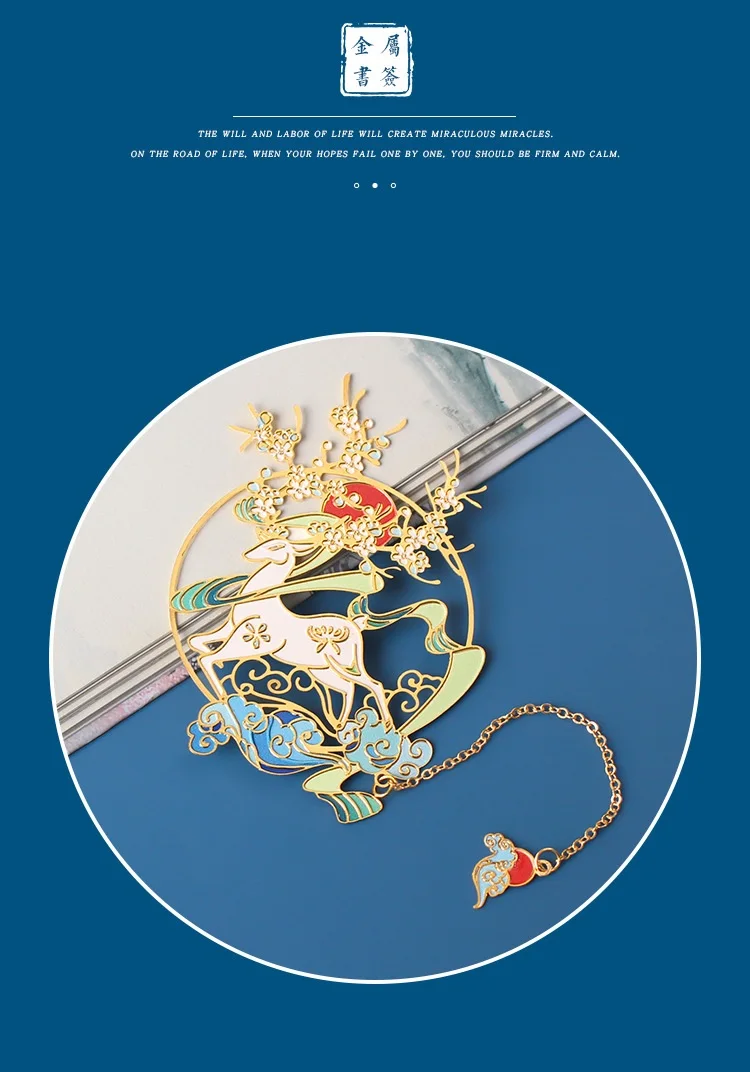 Металлические закладки в китайском классическом стиле, мифологические лисы, краны и олень, высококачественные подарки, поделки, художественные закладки, Канцтовары