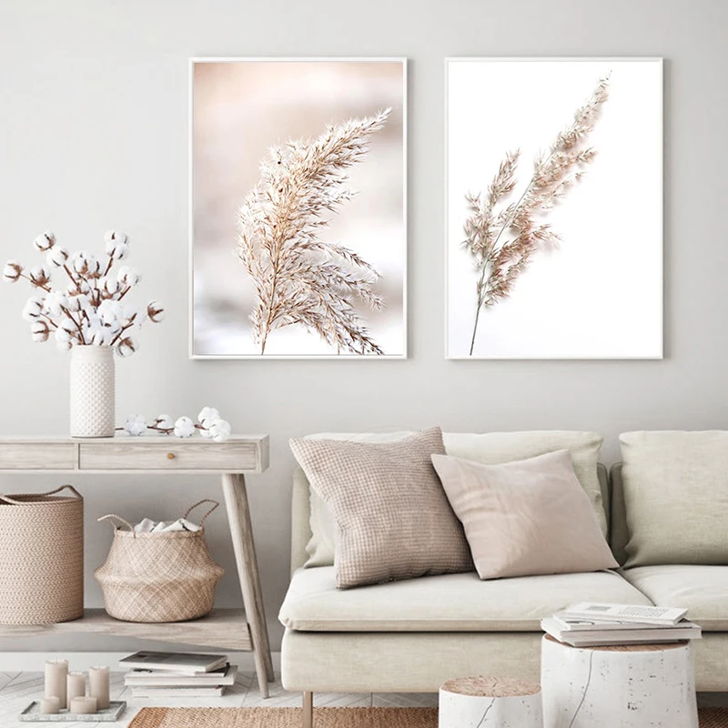 Плакаты и принты в скандинавском стиле с изображением сушеных цветов, растений, бежевых тростников, пшеницы, настенная живопись на холсте, настенные картины для гостиной, домашний декор