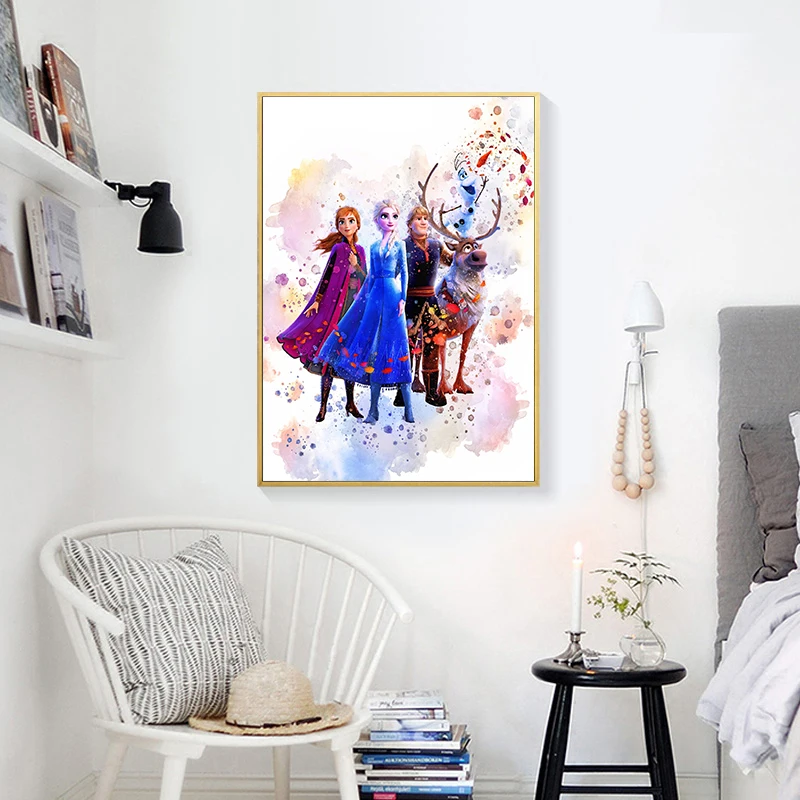 Акварель Дисней мультфильм принцесса печать на стене искусство Эльз...