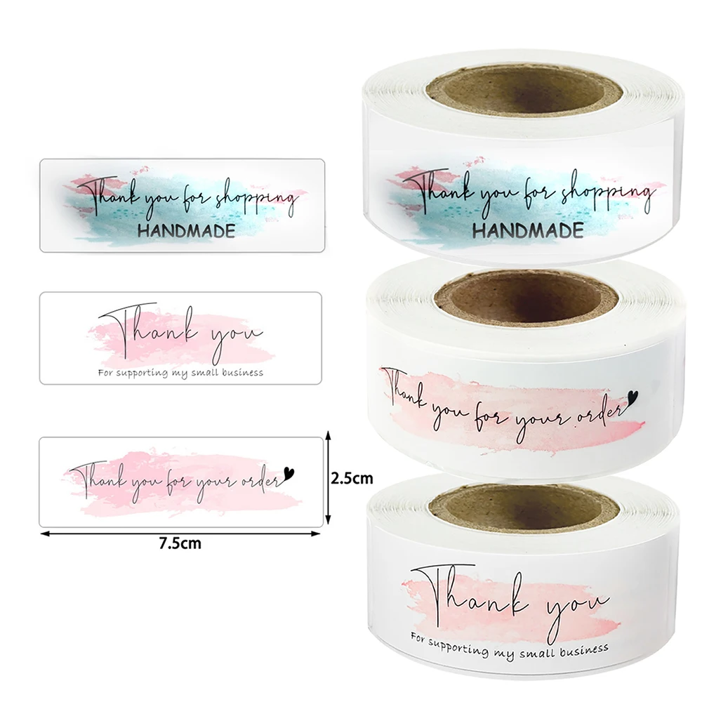 120 шт./рулон 7,5*2,5 см розовый спасибо стикеры малого бизнеса покупок упаковка Декоративные наклейки этикеток
