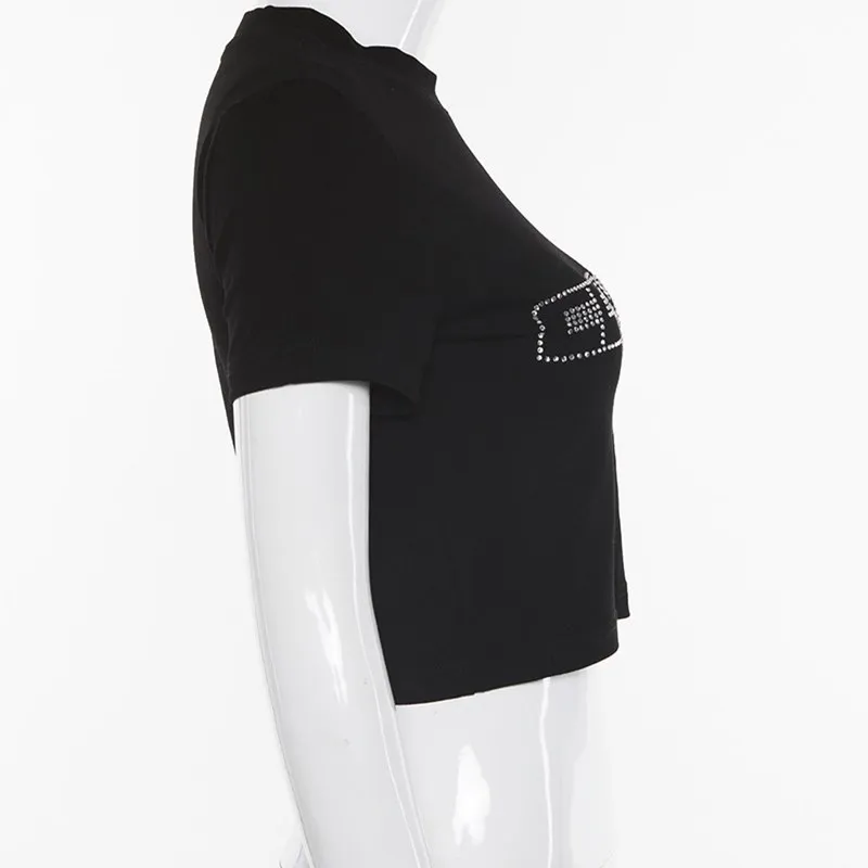 Женские летние винтажные футболки Стразы в стиле панк с графическим пауком, Детская футболка Y2K, облегающий жилет с коротким рукавом в пупок, Клубная уличная одежда
