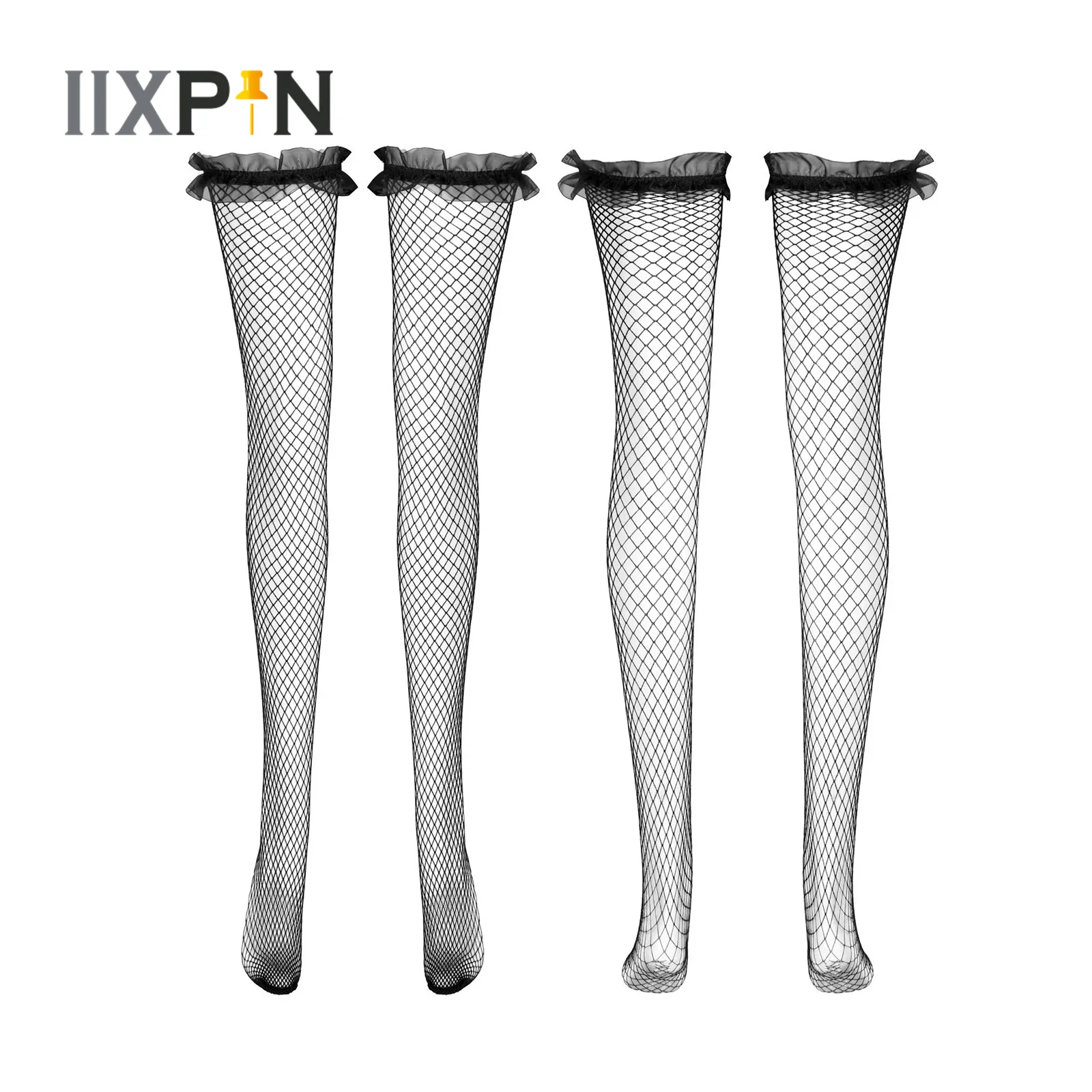 Высокие шелковые чулки, милые открытые прозрачные чулки до бедра с оборками, ажурные чулки выше колена, красивые чулки-чулки