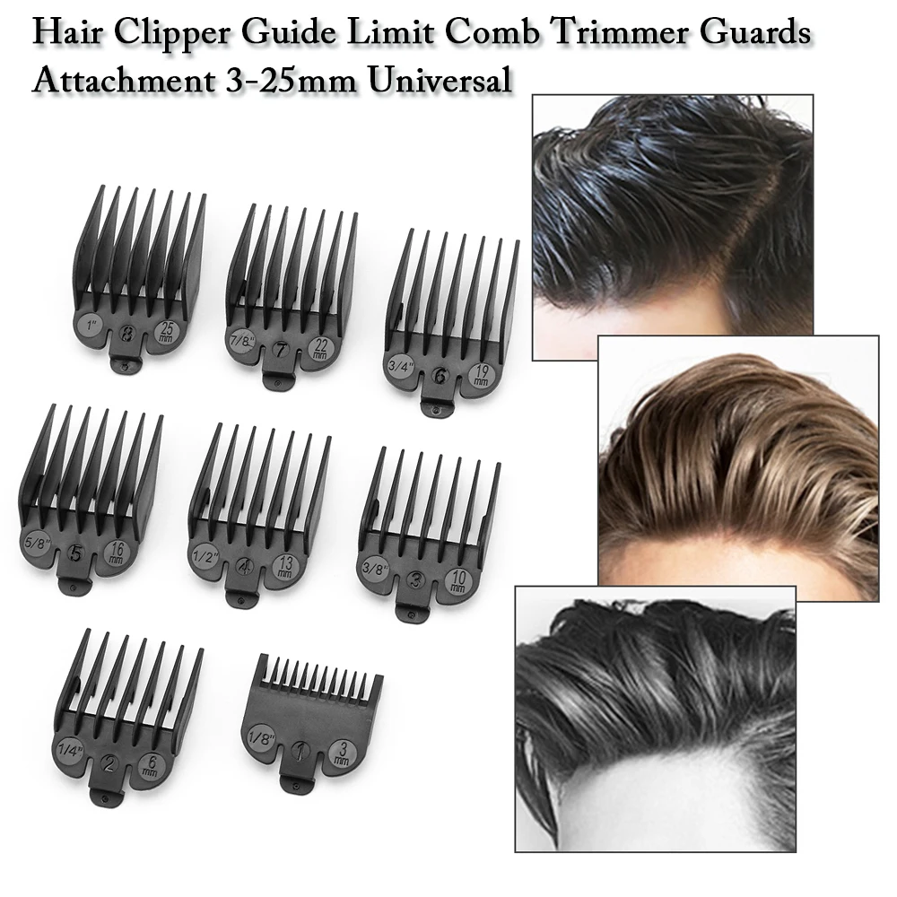 8 шт 3-25 мм Универсальный Руководство машинка для стрижки волос предел гребень профессиональные мужские модные Парикмахерская насадка триммер для охранников инструмент для замены