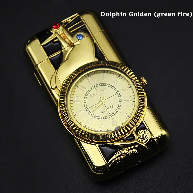 Металлические зажигалки надувная газовые зажигалки Классический Золотой Смотреть факел Turbo прикуриватель курительных принадлежностей Для мужчин подарки гаджеты