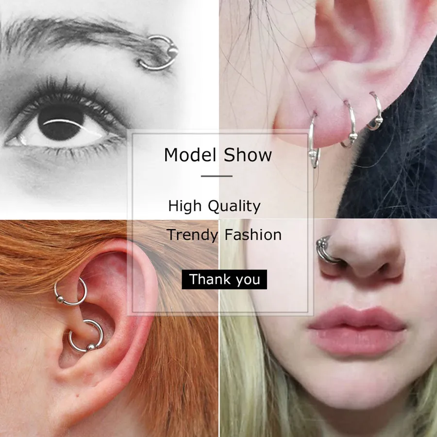 Набор колец из нержавеющей стали для пирсинга носа, бровей, живота,...