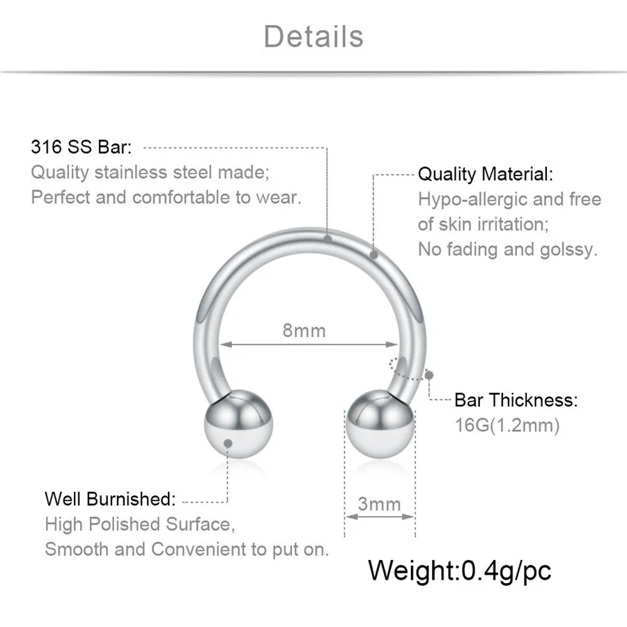 1 шт 8 мм, модное кольцо из нержавеющей стали в форме подковы фальш...