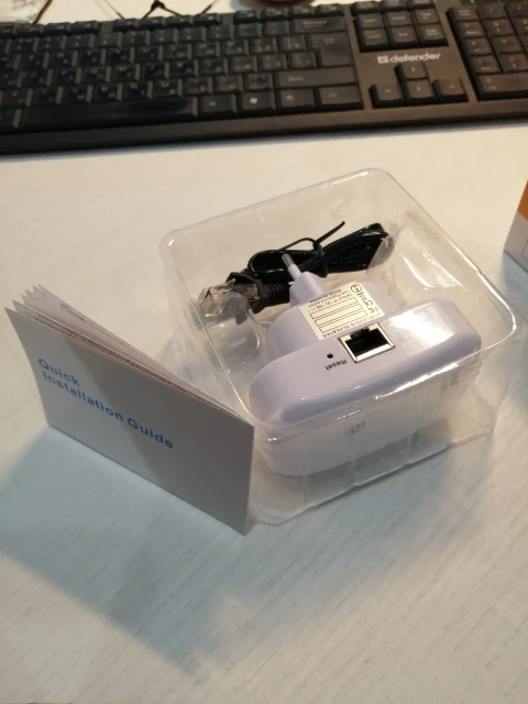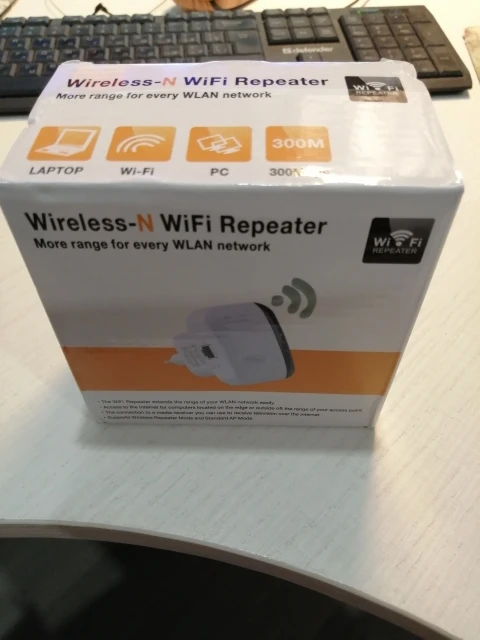 Доставка в Украину, 24 дня, укрпочтой. Коробки нету, но пришёл целый. Брал для тв бокса, нужно было усилить сигнал Wi-Fi, с помощью этой приблуды цель достигнута. С роутером, репитер сконектился с помощью кнопок WPS.