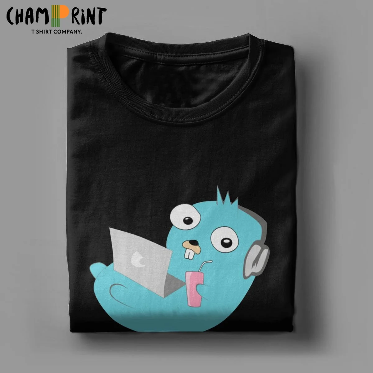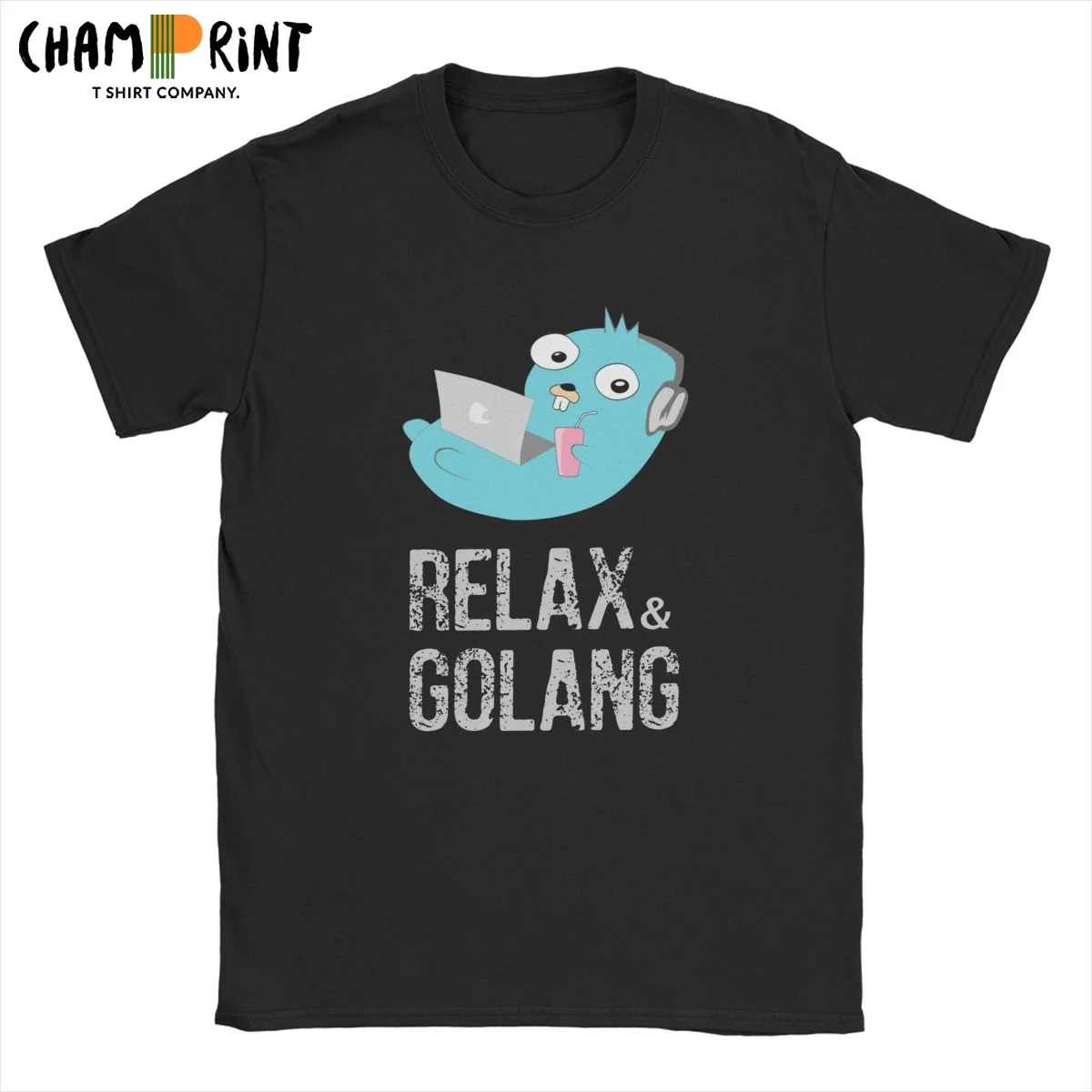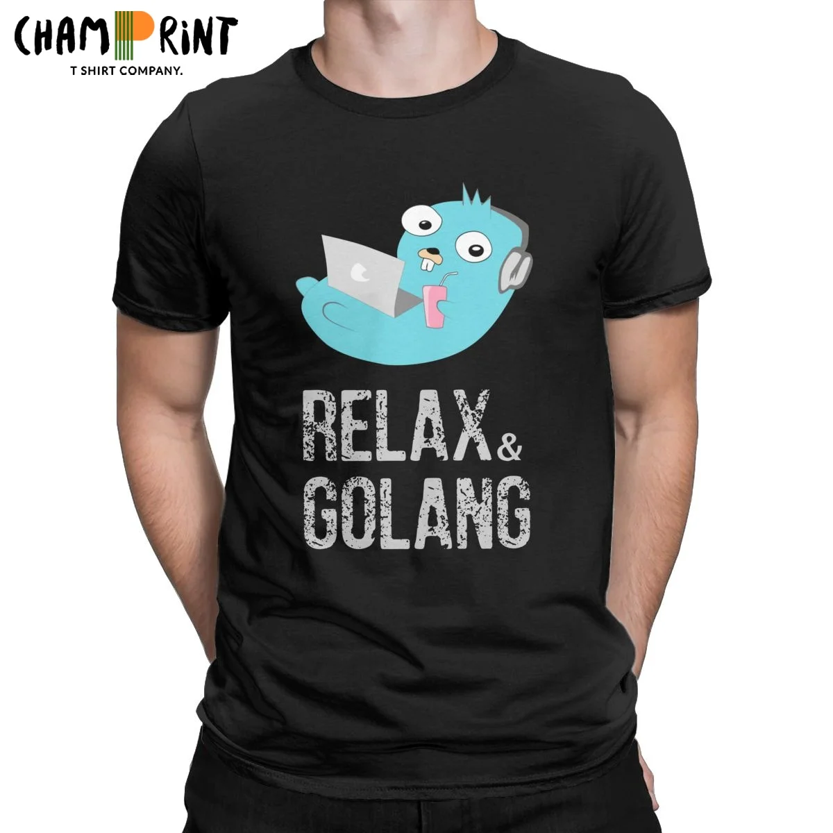 Расслабляющая футболка Gopher Golang Go, мужские хлопковые повседневные футболки, футболка с круглым воротником, топы с коротким рукавом и графическим принтом