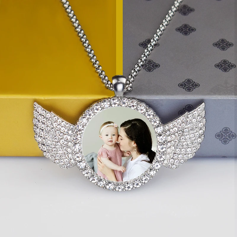 Пользовательские фото память Стразы кулон ожерелье Персонализированное изображение стеклянный купол ожерелье крылья ювелирные изделия