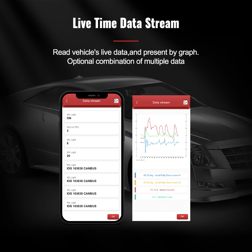 Благодаря превосходной диагностике всех систем этот универсальный сканер obd2 может использоваться для чтения информации о ЭБУ всех доступных систем, чтобы облегчить диагностику транспортного средства. Полные системы отличаются от различных автомобилей, и они обычно включают двигатель, трансмиссию, ABS, SRS, SAS, TPMS, EPB и шасси/корпус/электрическое оборудование и т. Д.* Проверьте свой автомобиль, как профессиональный механический техник* Прочитайте DTCs из всех электронных систем управления транспортного средства, чтобы найти проблемные зоны и предложить решения;* Легко Стирайте коды после получения DTCs и проведения определенного ремонта и выключите индикатор неисправности;* Реальные данные показывают каждый элемент параметра sendor, отображаемый в аналоговом, текстовом, волноводном графическом режимах и т. д.;