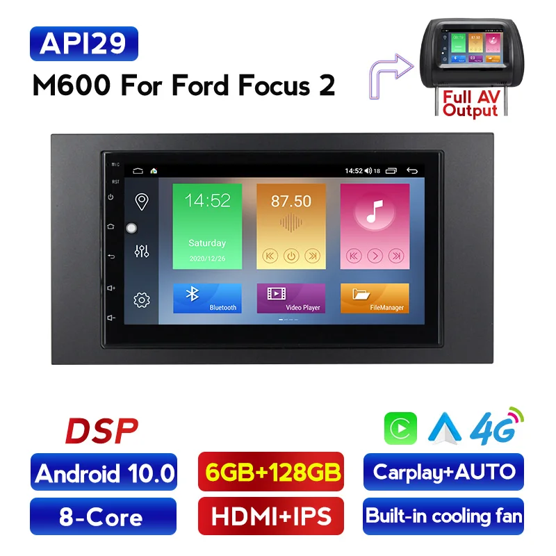 6 + 128G HD Android 10 головное устройство для Ford Focus 2 Gps-навигация для радио аудио автомобильный GPS мультимедийный плеер 2DIN Carplay авто