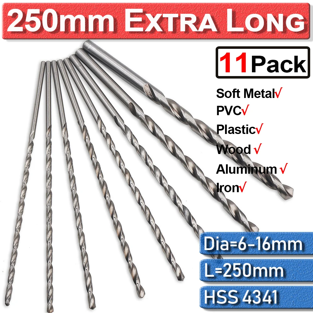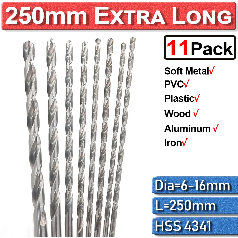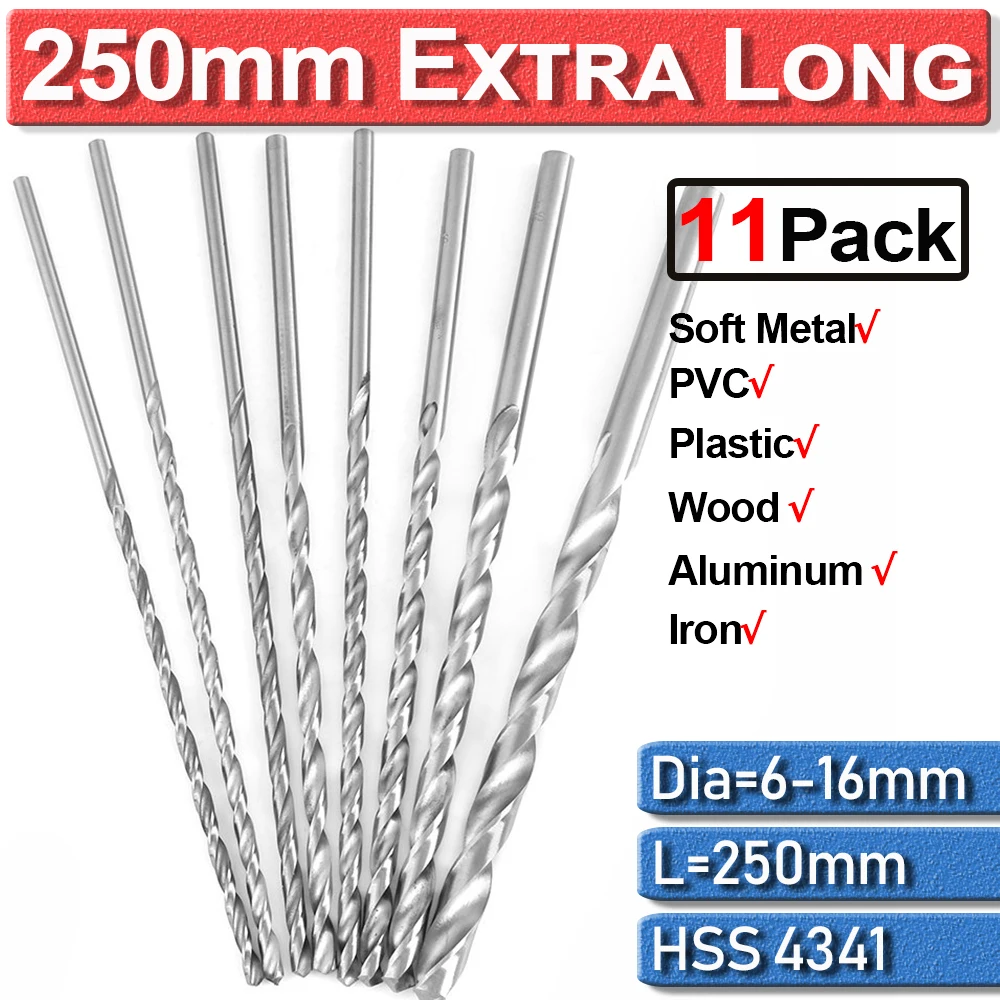 11 шт. 250 мм 6 мм-16 мм HSS сверла удлиненная высокое Скорость Сталь биты для сверла для деревообработки для металла, дерева, Пластик инструменты D30