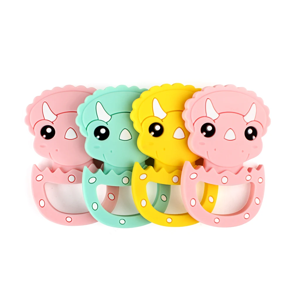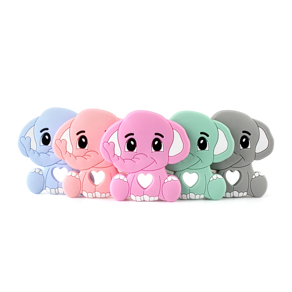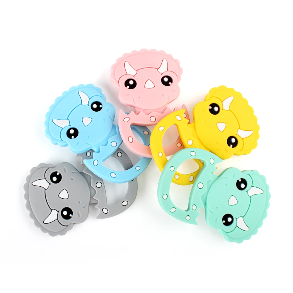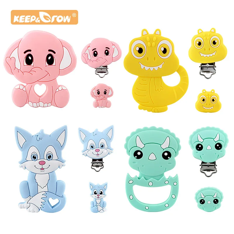 Прорезыватель для зубов силиконовый в виде животных, соска с бусами зажимов, не содержит бисфенола А, слона, лисы, динозавра