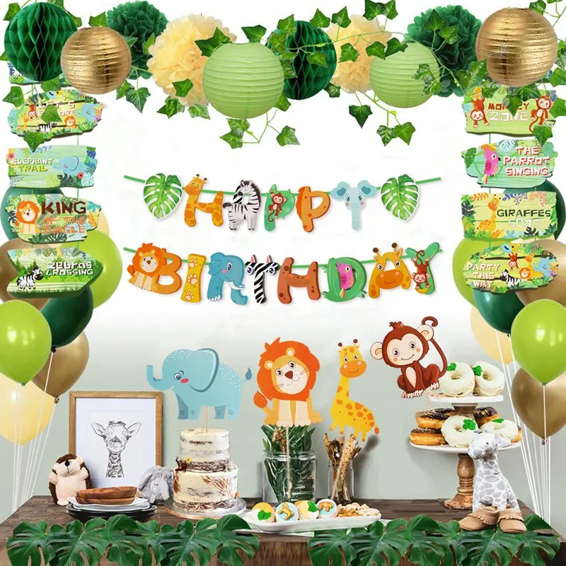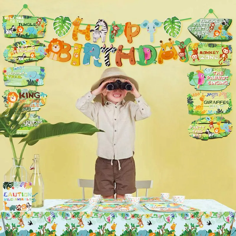 Одноразовая посуда в виде животных джунглей, украшение для дня рождения детей, Лесной Декор в джунглях, товары для вечеринки в стиле сафари, 1-й детский душ