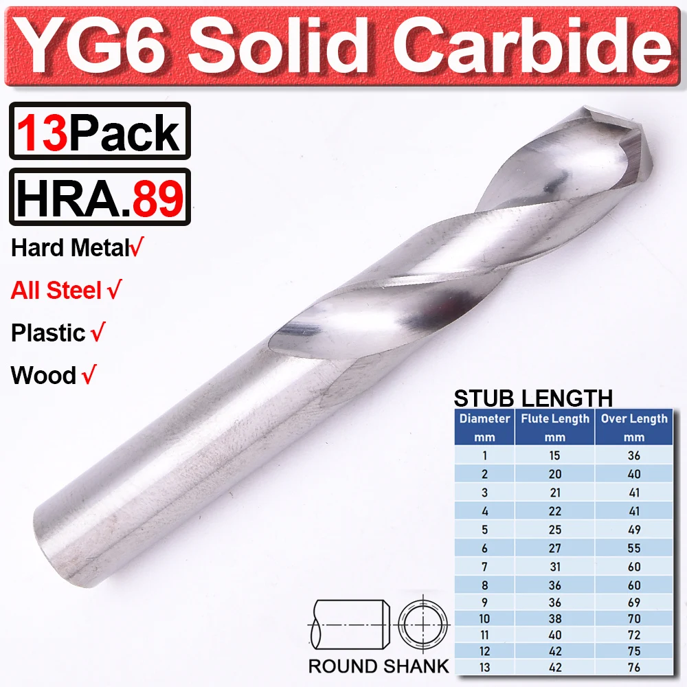 Твердосплавная заглушка 1-13 мм 135 ° HRA.89 YG6, твердосплавная заглушка, спиральное сверло, сверло Jobber, Прецизионная заземляющая твердая плита для всей стали, нержавеющей стали, металла