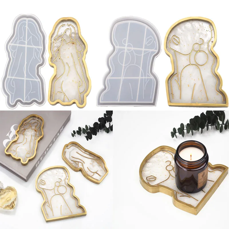 Силиконовая форма сделай сам для девушек и женщин, модель тела, абстрактная тарелка, зеркальный лоток, силиконовая форма для подстаканника из смолы