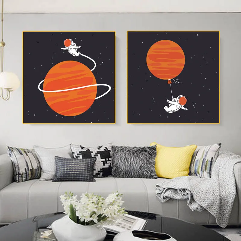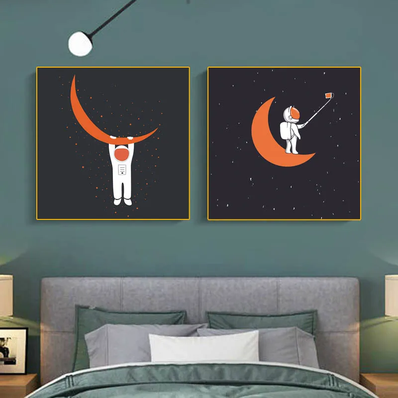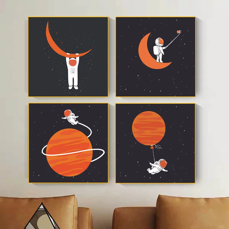 Настенная картина для мальчика, спальни, комнаты, картины, мультфильм, Селфи, астронавт, картина, современные Плакаты для гостиной, принты, домашний декор