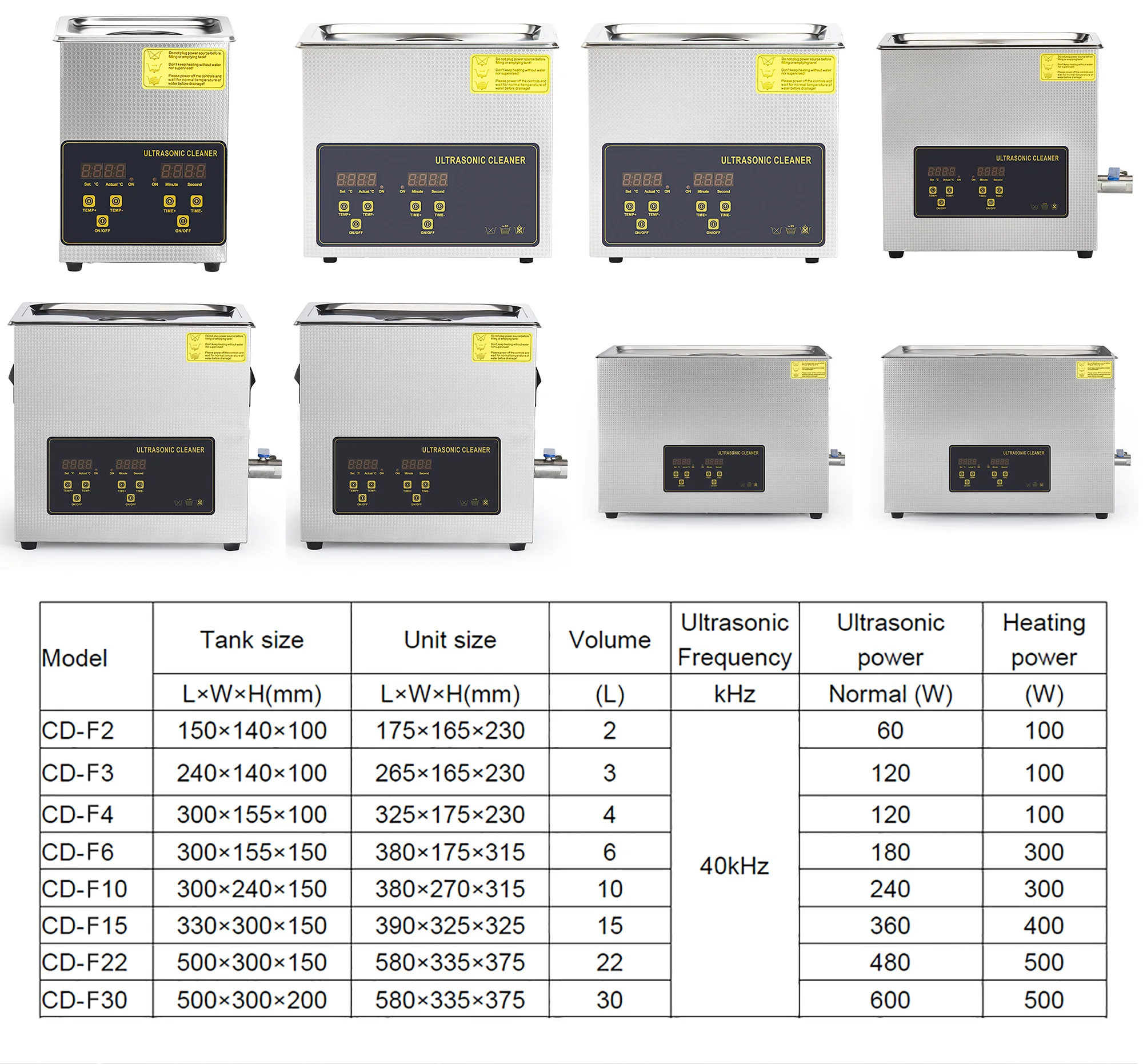 Модель машины для ультразвуковой очистки: серия CD-FХарактеристики: управление цифровым дисплеем нагревание и время, удобный и простой обзор функций:1. На основе высокопроизводительных ультразвуковых компонентов, соответствующих двойной схеме защиты, высокой выходной мощности;2. Выберите высокоточное нагревательное устройство, соответствующее системе постоянной температуры, чтобы температура жидкости была сбалансированной;3. Светодиодный цифровой дисплей работает гладко и стабильно, что улучшает чувство технологии работы и имеет эстетическое чувство и текстуру;4. Ультразвуковая кавитационная функция сбалансирована, которая имеет функции очистки, растворения, эмульгирования, диспергирования, извлечения алкоголя, пенообразования и дробления;5. Высокая выходная мощность улучшает ультразвуковой эффект, и эффект очевиден, что подходит для очистки всех видов объектов;6. Модели 6L и выше оснащены дренажной системой и встроенной противоскользящей ручкой;7. Продукт имеет сертификацию CE / RoHS / FCC и защиту интеллектуальной собственности.