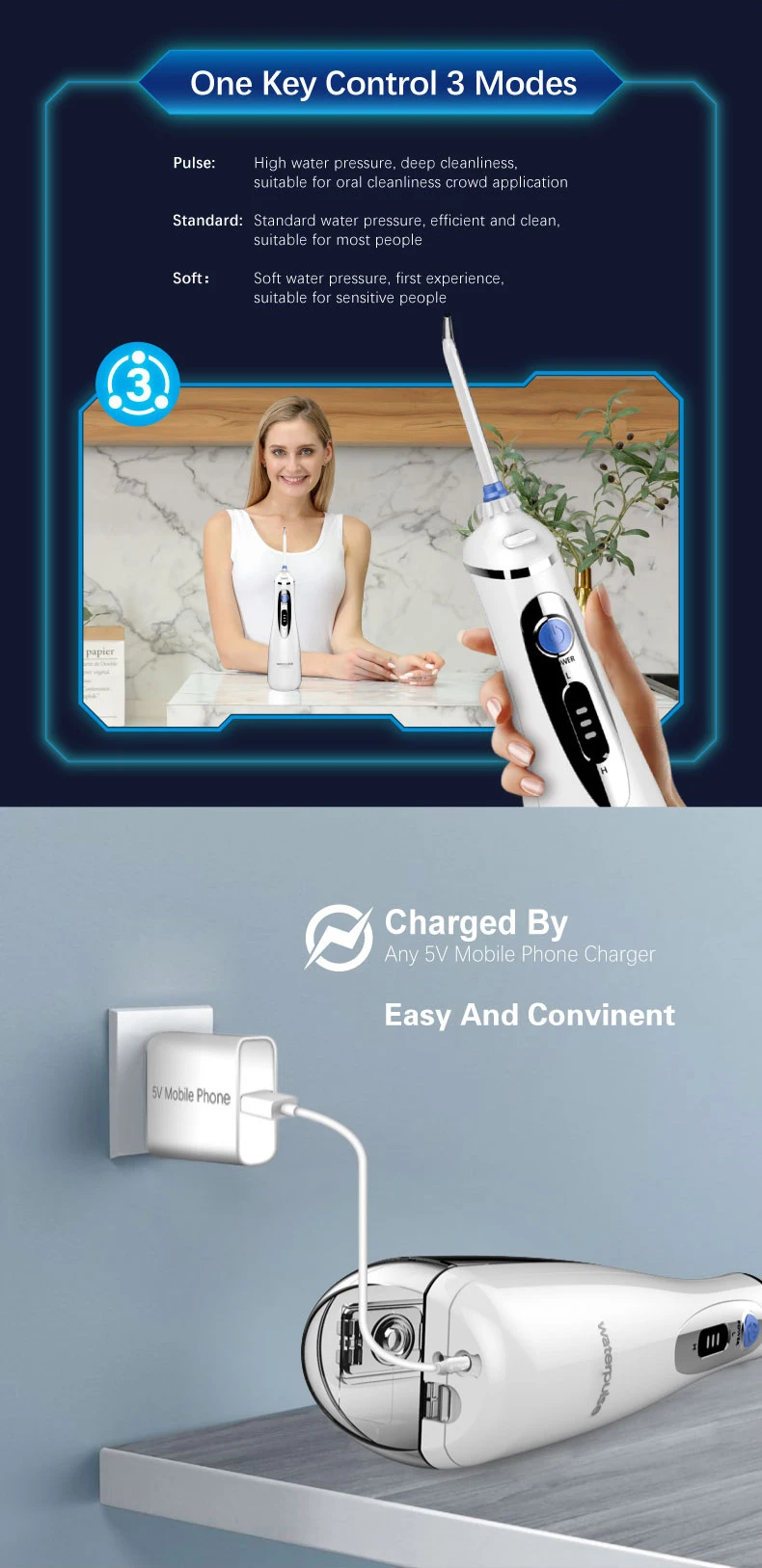 Waterpulse V400P Ирригатор для полости рта Портативный беспроводные дорожный чехол Перезаряжаемые Батарея нить для чиски полости рта зубов