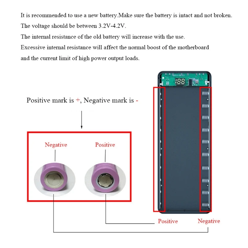 Внимание:18650 батареи не включены в посылка, вы должны приобрести отдельно.Можно использовать только батарею 18650, положительным электродом которой является плоский верх.Может быть разобран повторно.