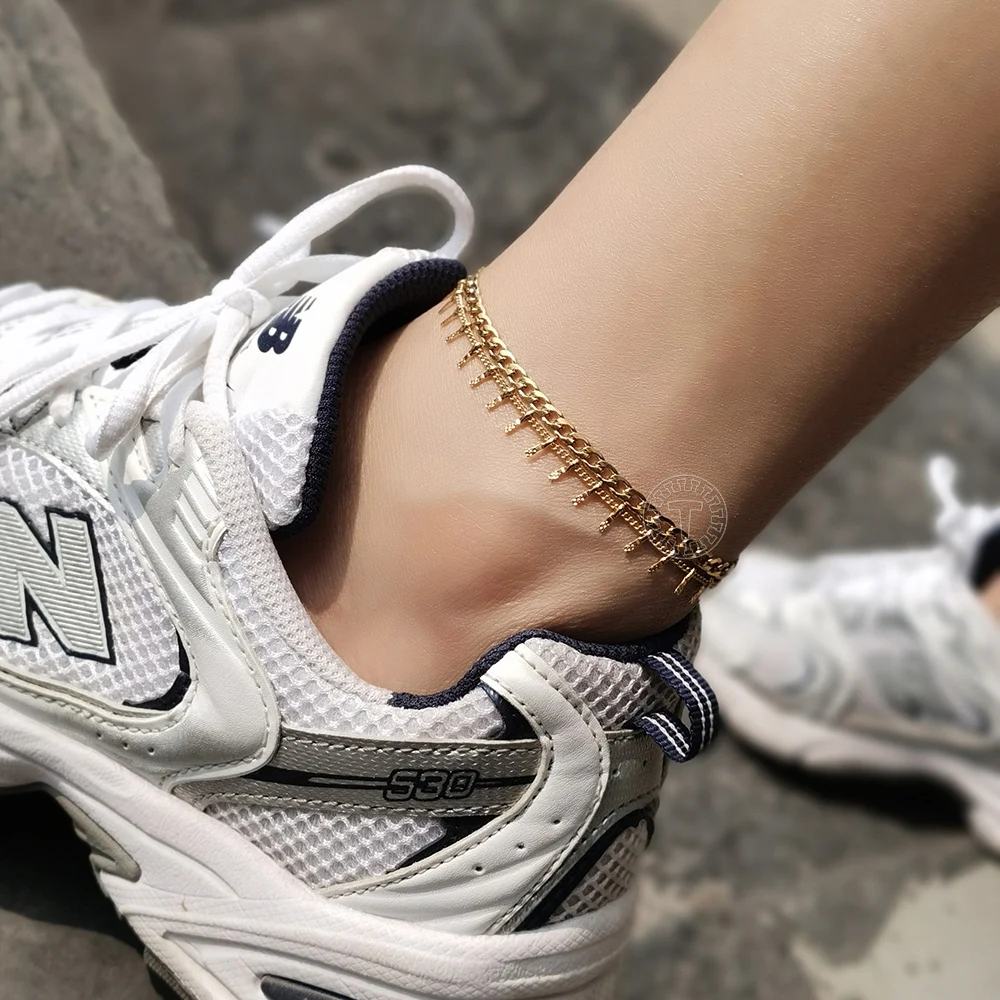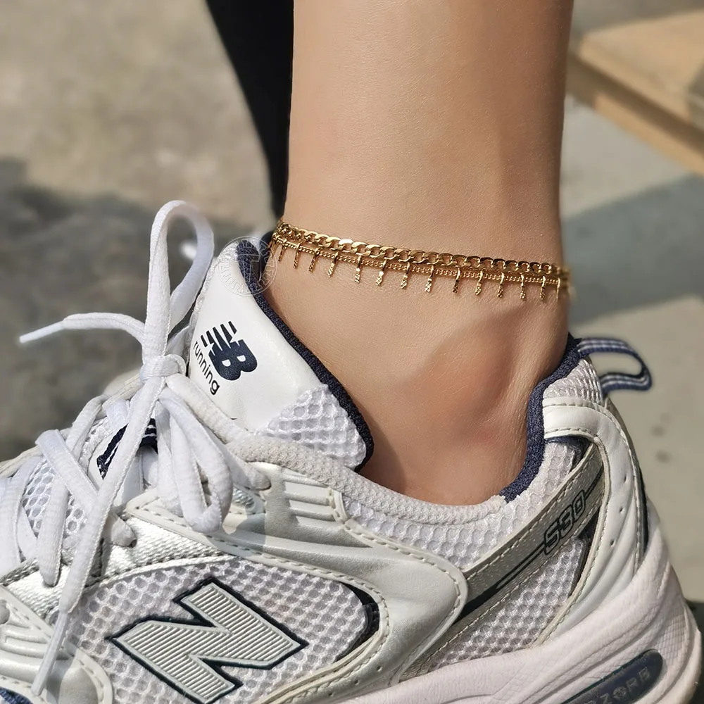 Летний браслет для женщин и девочек, многослойный браслет из нержавеющей стали, цепочка с кубинскими звеньями, регулируемый браслет, ювелирные изделия для ног DDA47