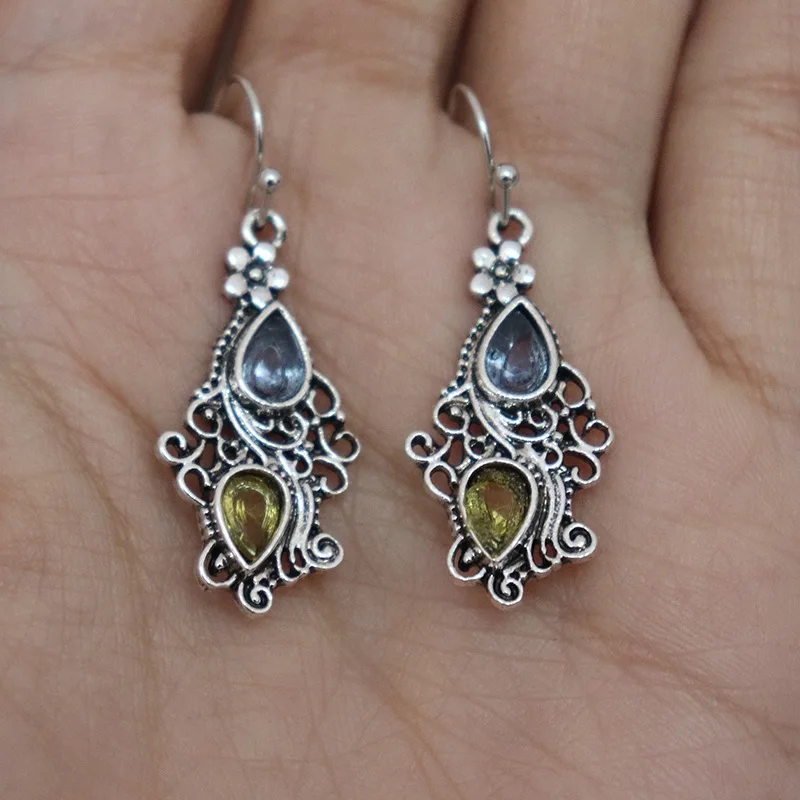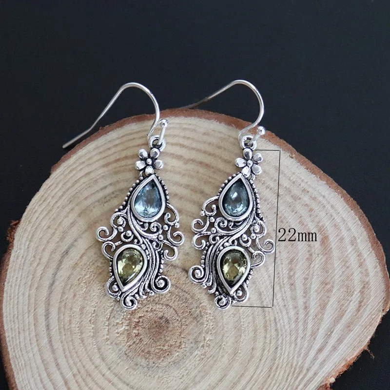 Винтажные висячие серьги в форме капли с синим и желтым цирконием для женщин, тренд 2021, Изысканные резные полые аксессуары