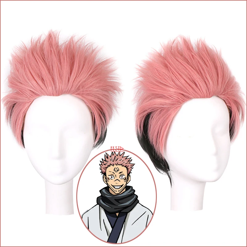 Аниме Jujutsu кайсен Косплэй парик Sukuna короткие розовые волосы Косплэй парик + бесплатная парик Кепки синтетические вечерние реквизит для Для мужчин аксессуары