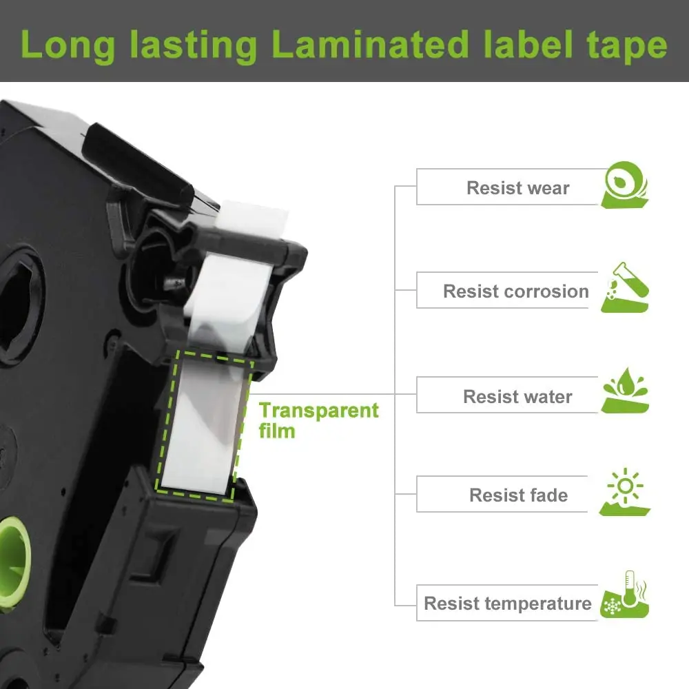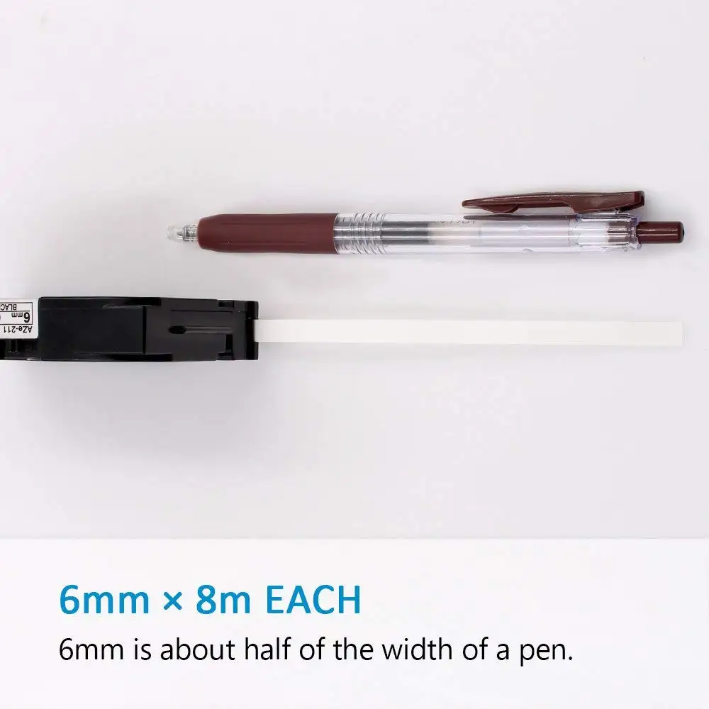 Markurlife, 6 мм, совместимая со стандартной ламинированной лентой для этикеток, tz211, tze211, черно-белая лента для этикеток, стандартная для принтера этикеток