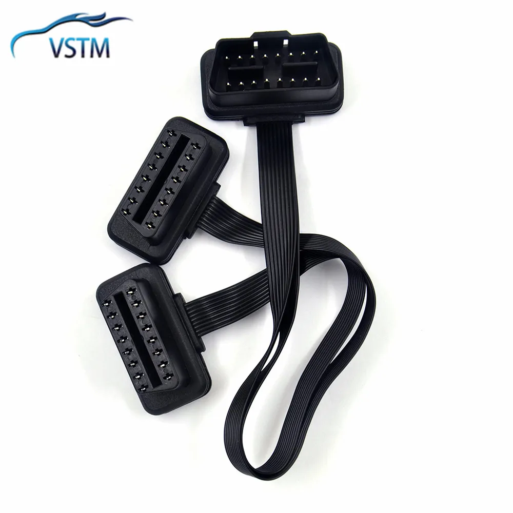 2021 Новый плоский + тонкий 16 Pin OBD 2 удлинитель OBD 16 Pin ELM327 Штекерный к двойному гнезду Y сплиттер локоть OBDII удлинитель соединительный кабель