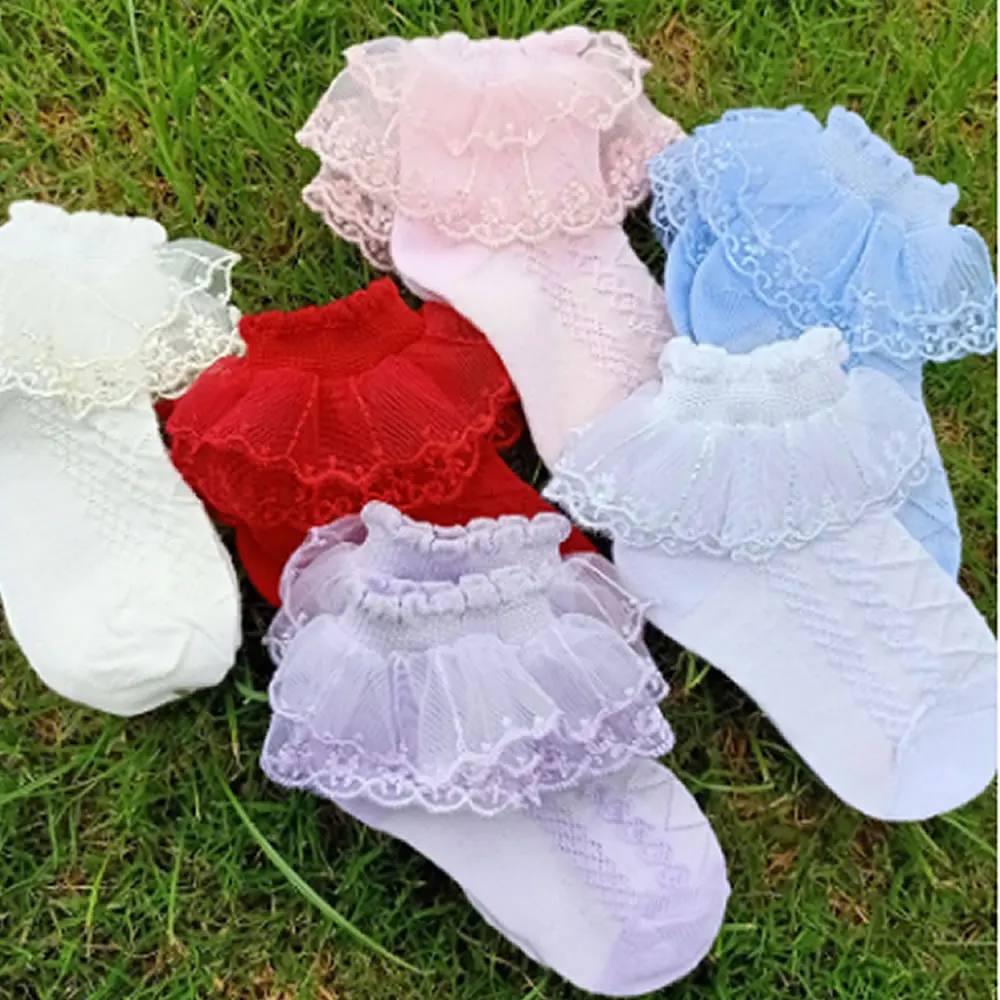 * Описание: calcetines de tobillo de algodón con volantes de ribete de encaje de princesa para niñas y niños