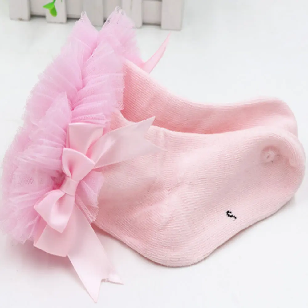 От 0 до 6 лет принцессы; Юбка-пачка; calcetines cortos niñas bebé calcetines cinta de seda; Бант; encaje volantes algodón tobillo calcetines Fotografia Accesorios