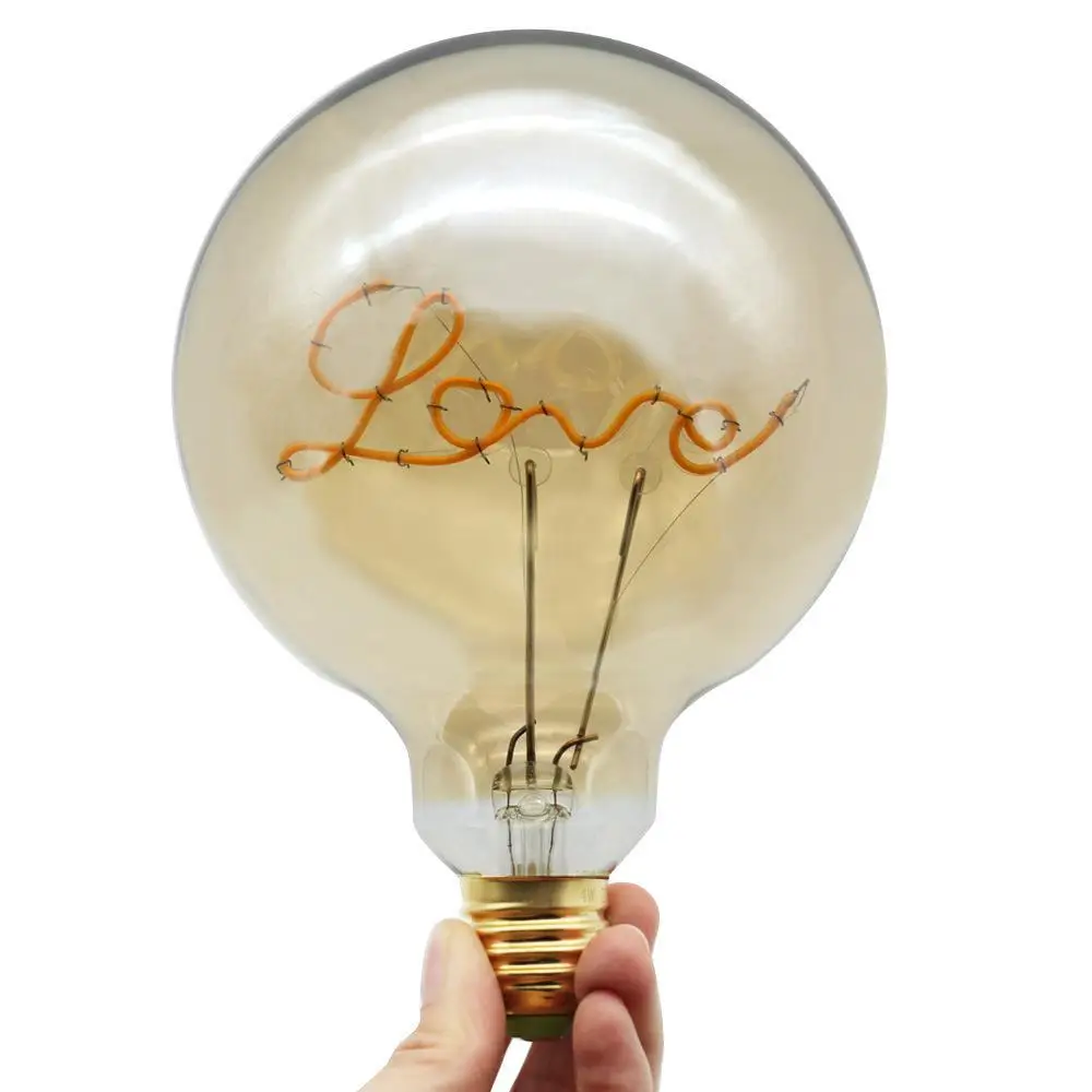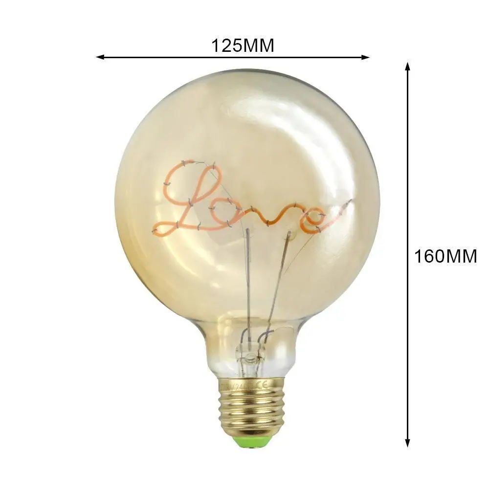 Светодиодная лампа Эдисона G125 в стиле ретро с надписью Love