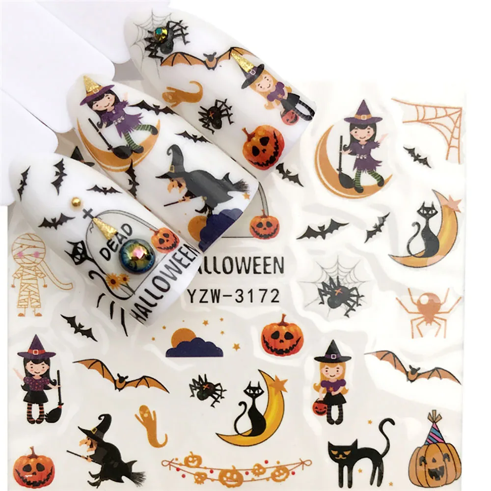 Снежинка наклейки для ногтей с бантом для ногтей кленовый лист все для маникюра Снеговик Пингвин Хэллоуин наклейки для ногтей Водные Наклейки для ногтей