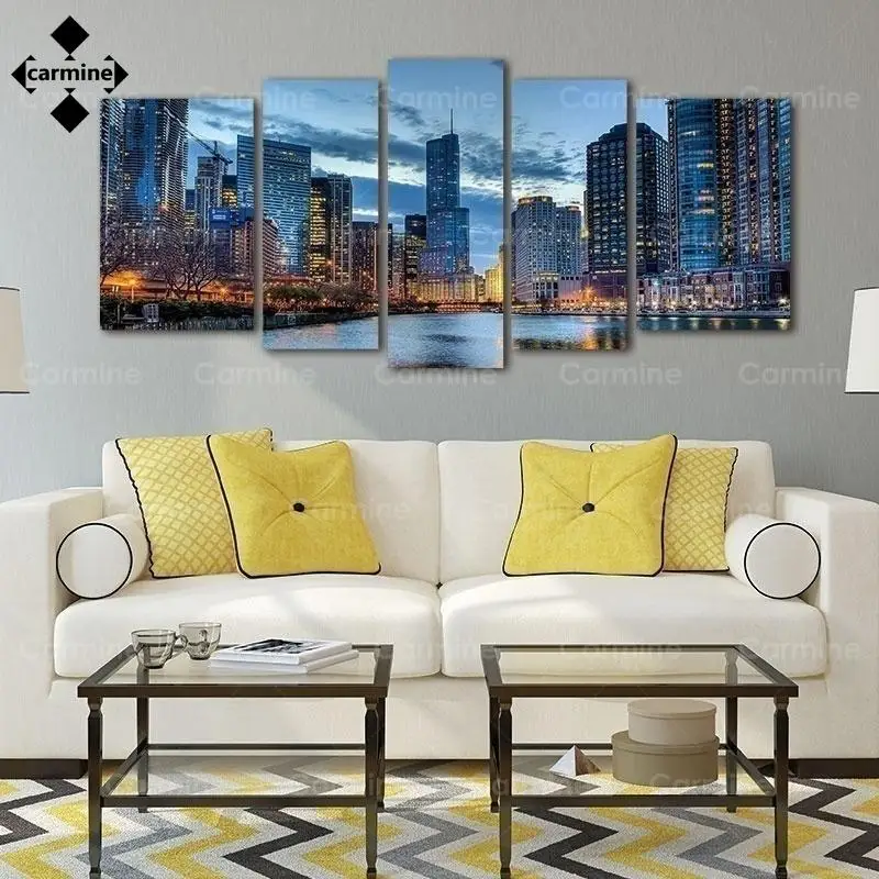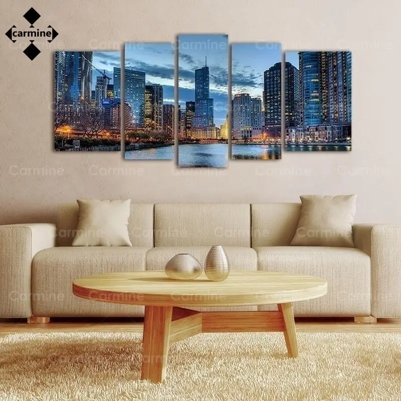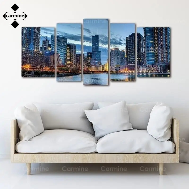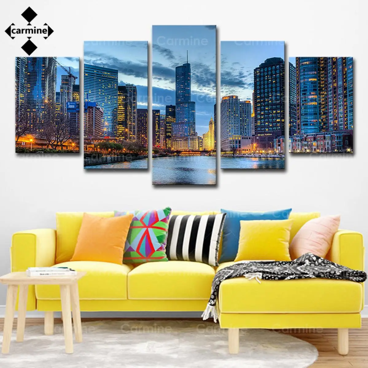 Картина на холсте Чикаго, городской пейзаж, 5 шт., Hd картина, современный стиль, плакат и печать, декор для гостиной, без рамки